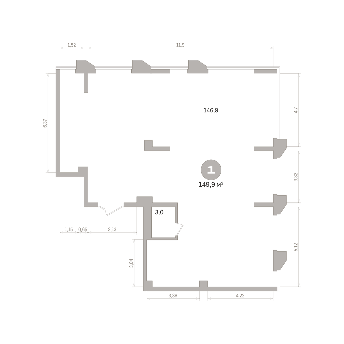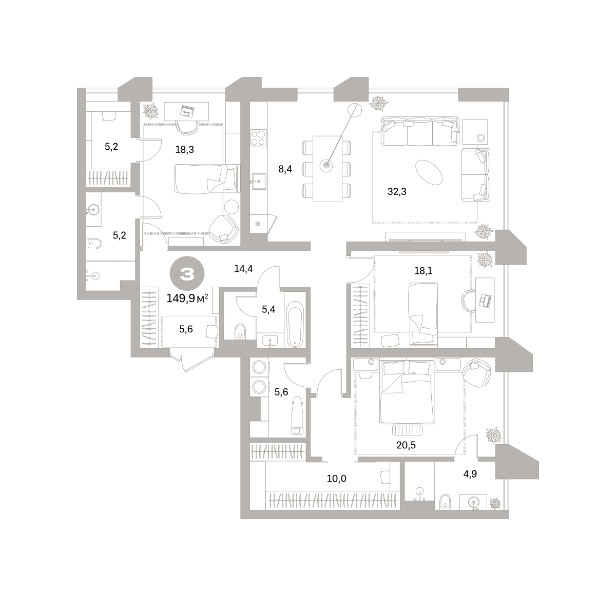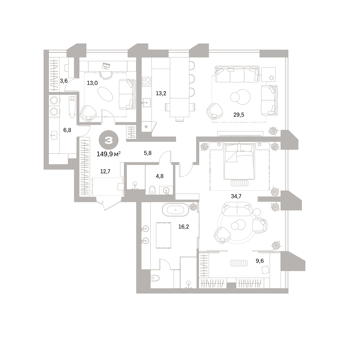 Квартира с кухней-гостиной и одной спальней в проекте Гоголя 21. Особенности планировки: окна в пол, панорамное остекление, свободная планировка. № квартиры в нашей базе: ЗНГ01-Ж1.16.4.