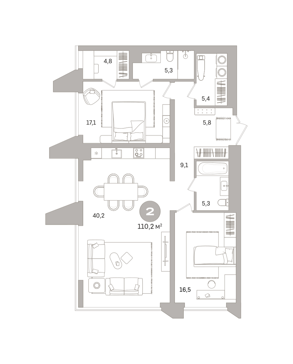 113.40 м² | 11 - 16 эт.