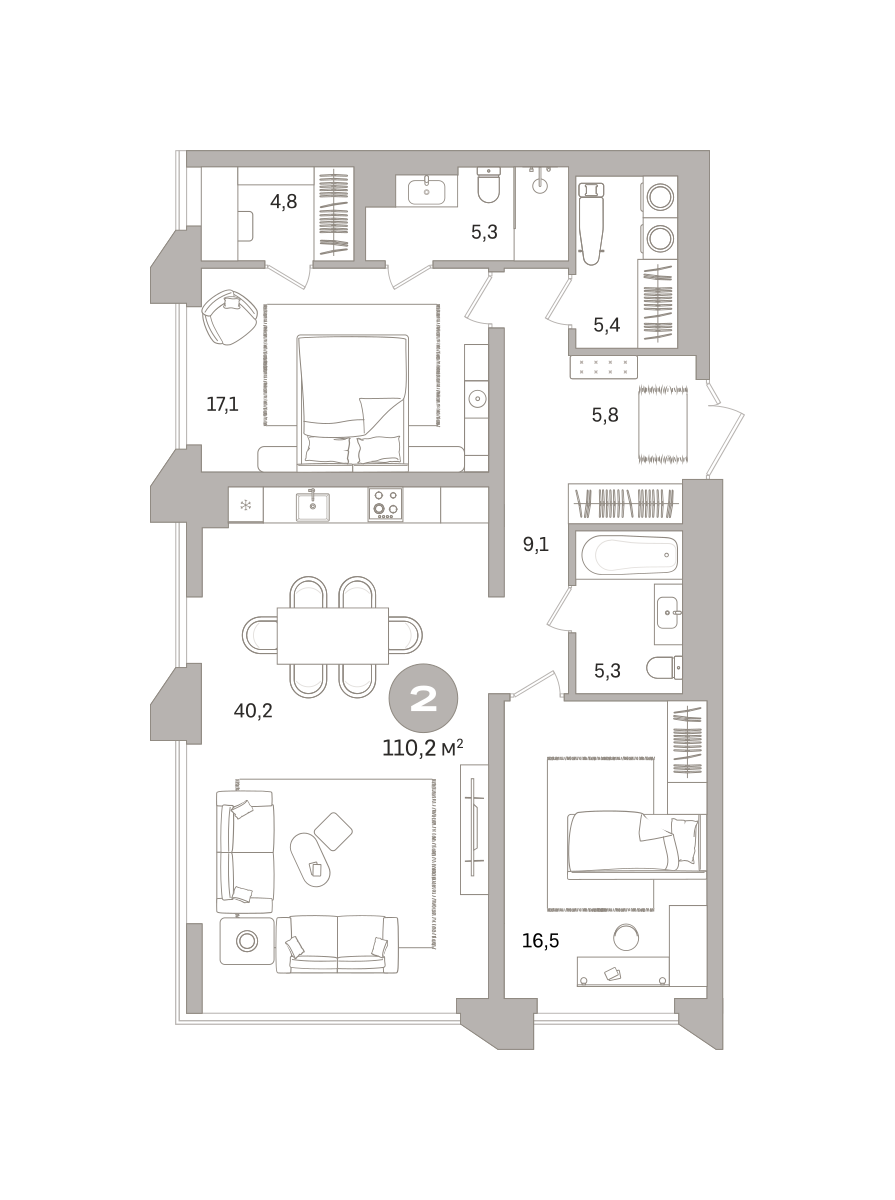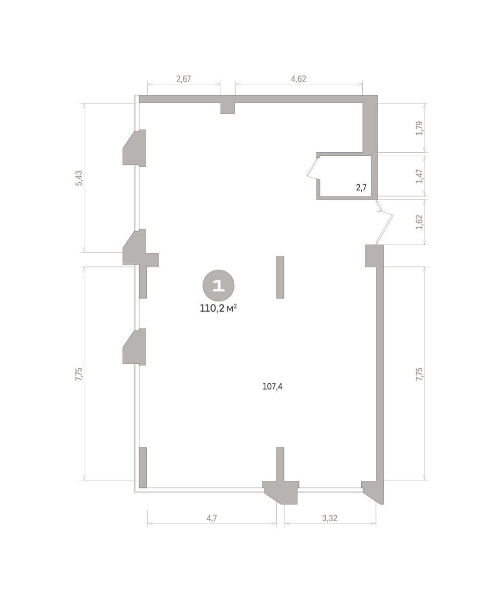 Квартира с кухней-гостиной и двумя спальнями в проекте Гоголя 21. Особенности планировки: без отделки, свободная планировка. № квартиры в нашей базе: ЗНГ01-Ж1.6.3.
