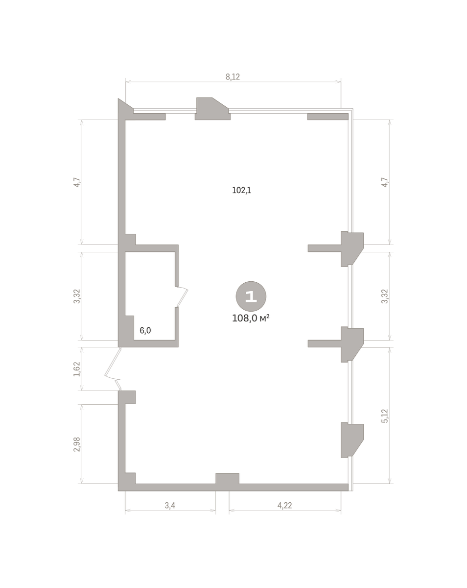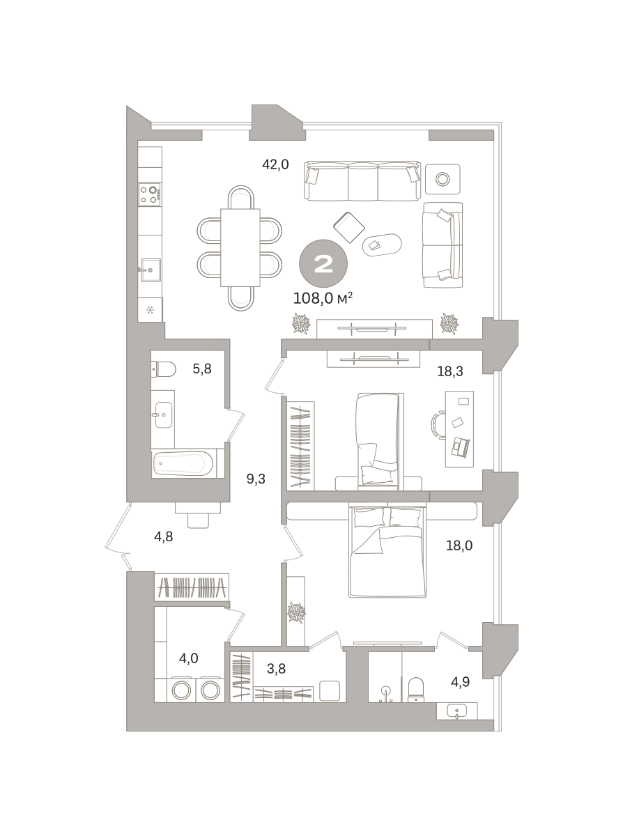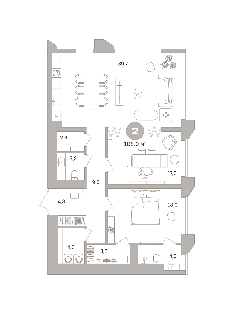 Квартира с кухней-гостиной и двумя спальнями в проекте Гоголя 21. Особенности планировки: без отделки, свободная планировка. № квартиры в нашей базе: ЗНГ01-Ж1.5.6.