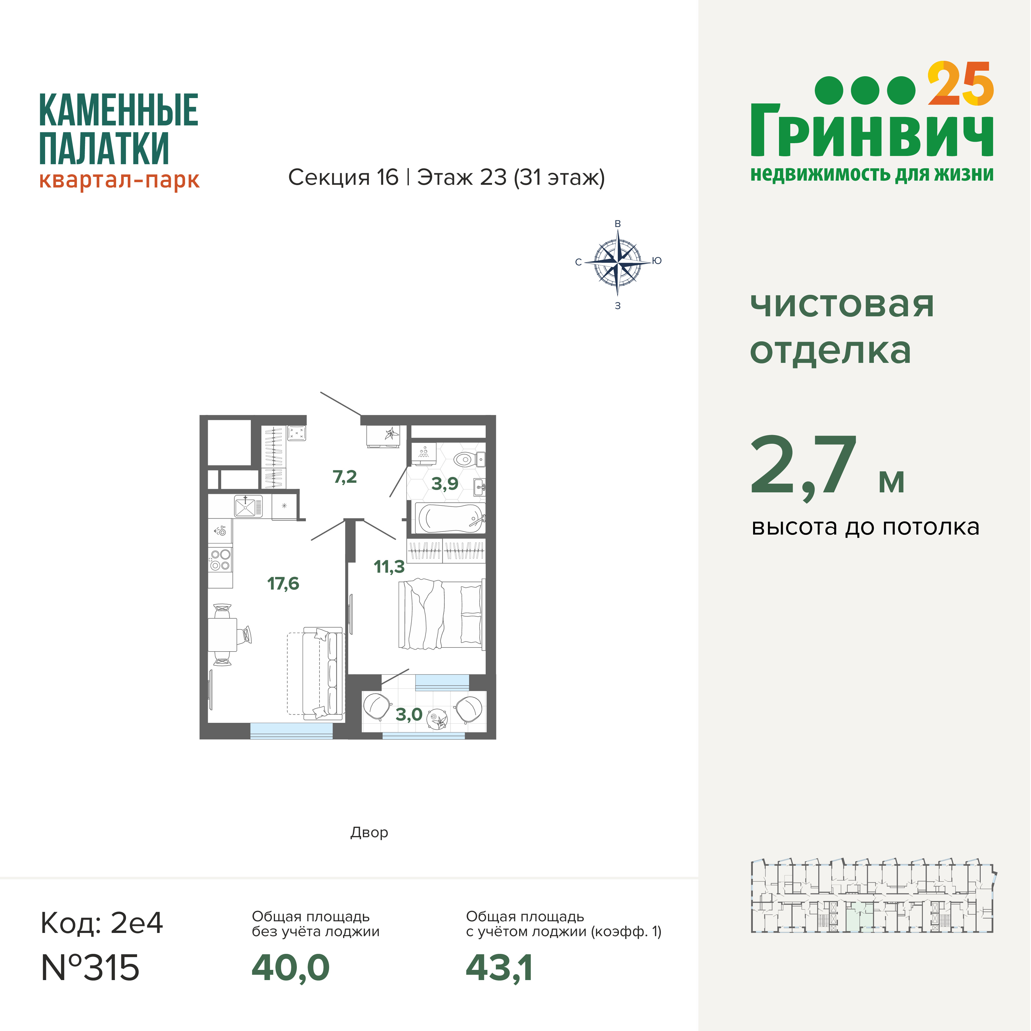 40.40 м² | 10 - 23 эт.