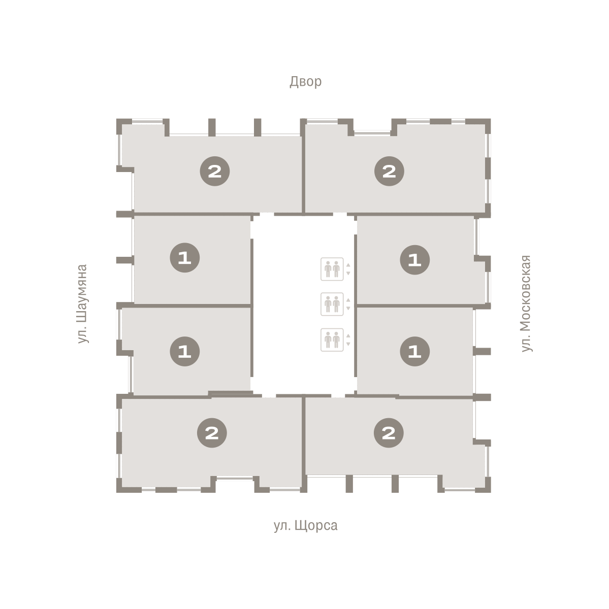 Двор закрыт от машин и оформлен в стиле скандинавского натурализма. Он похож на парк, сформировавшийся без участия человека и сохраняющий обаяние в течение всего года. Под домом запроектирован подземный паркинг, а также кладовые для хранения сезонных вещей.
