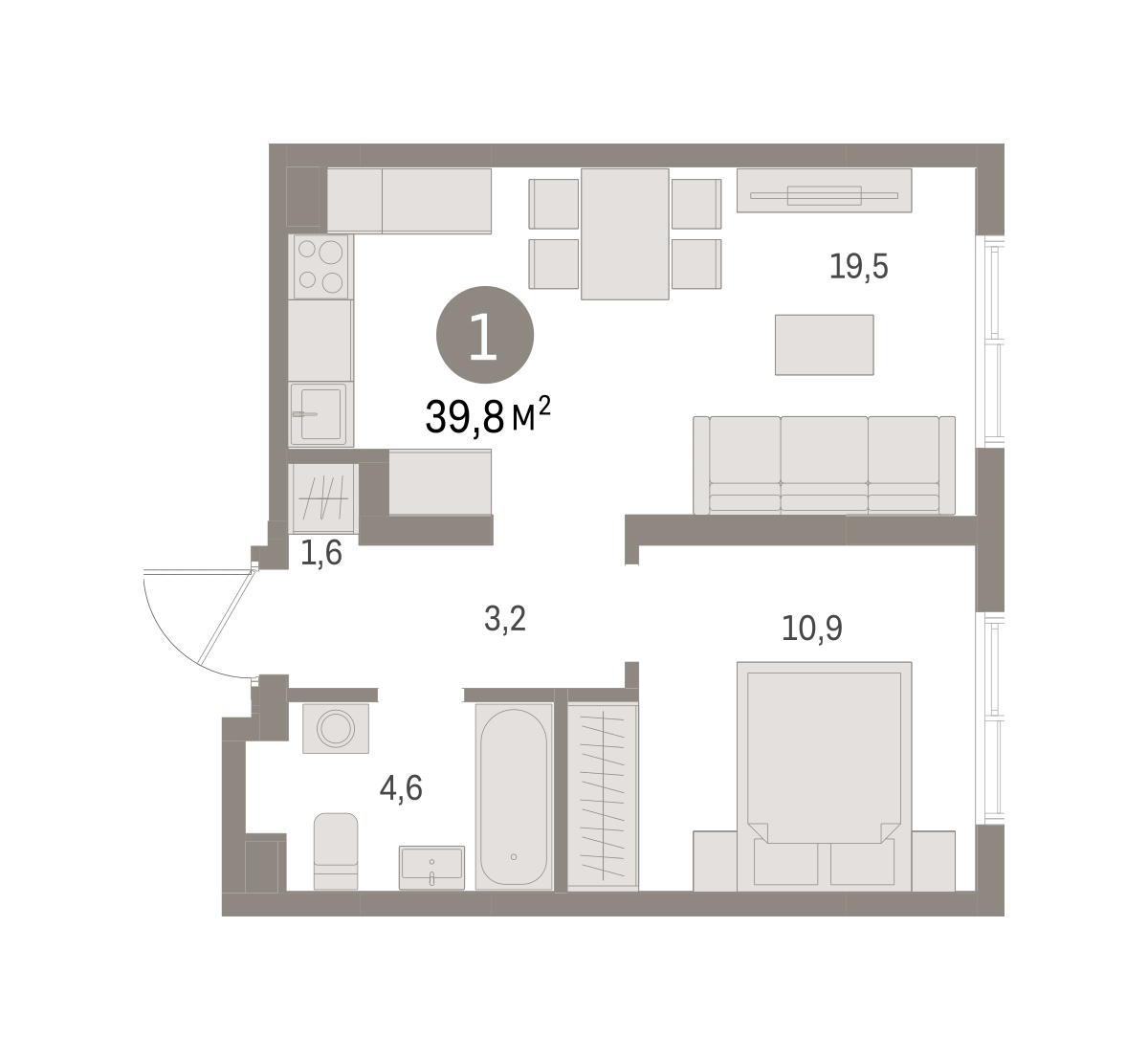 39.70 м² | 19 - 25 эт.