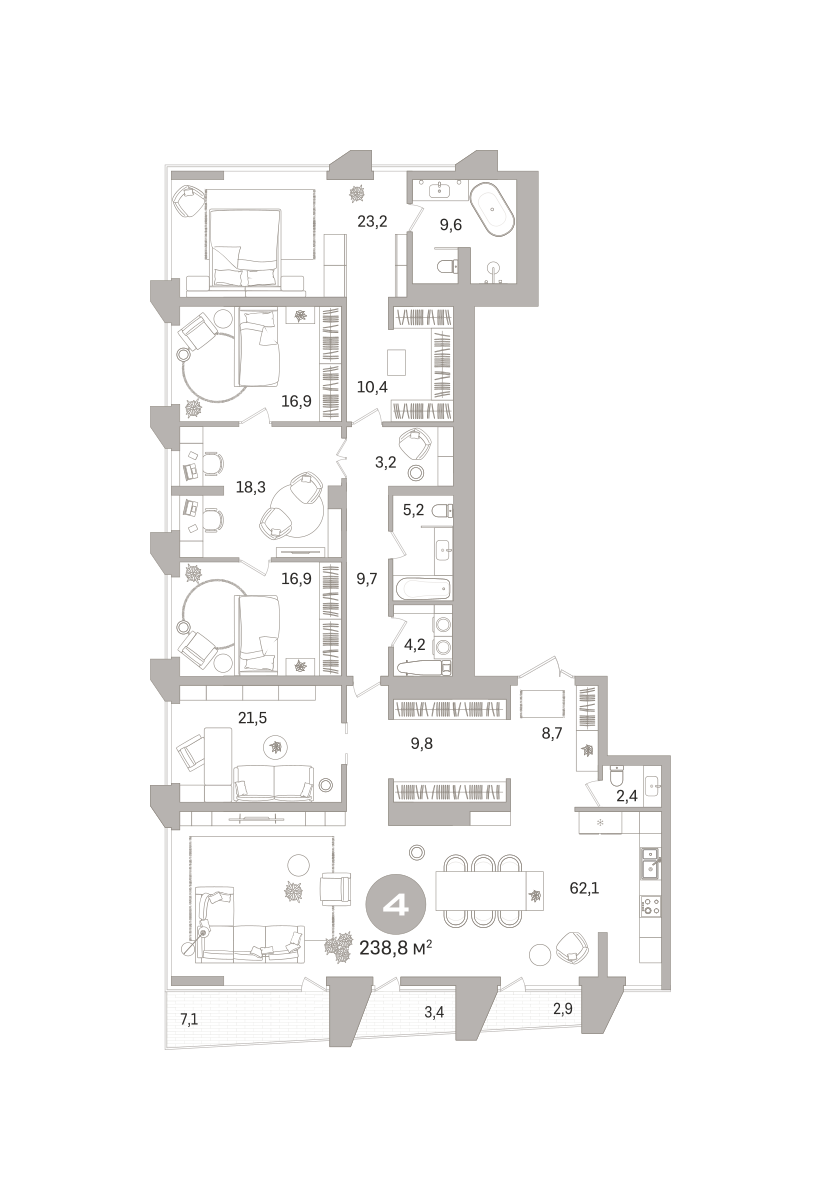 238.00 м² | 18 - 21 эт.