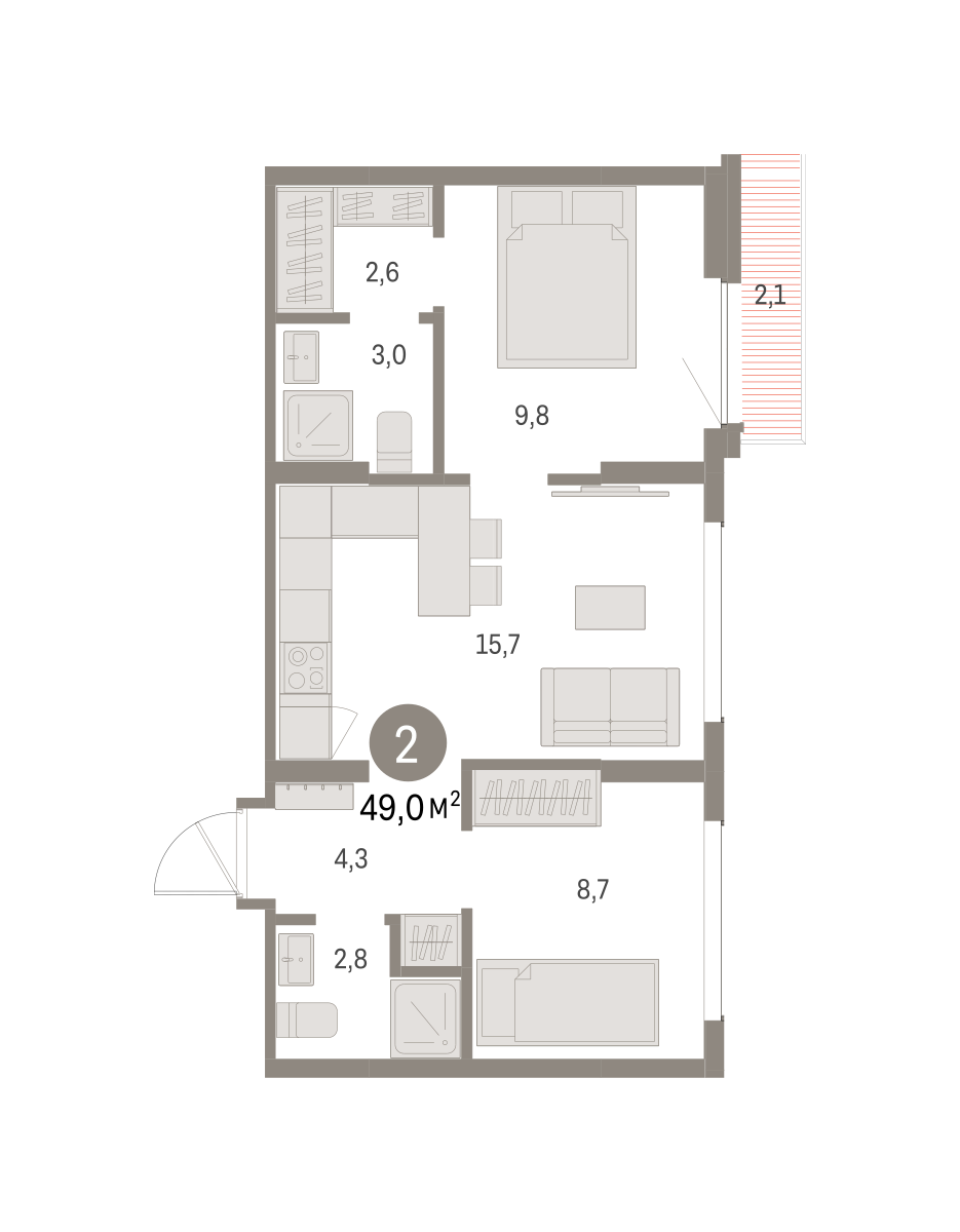 Продаётся с кладовой. Квартира с кухней-гостиной и двумя спальнями в Бруснике в Академическом. Особенности планировки: гардеробная, разнесённые спальни, предчистовая отделка, мастер-спальня, балкон. № квартиры в нашей базе: АКД05-Ж4.8.4.