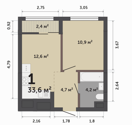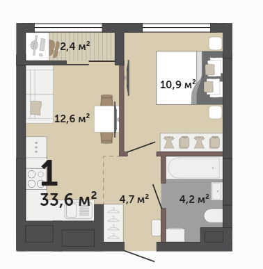 1-к квартира | 35.54 м² | 12 - 17 эт.