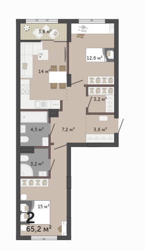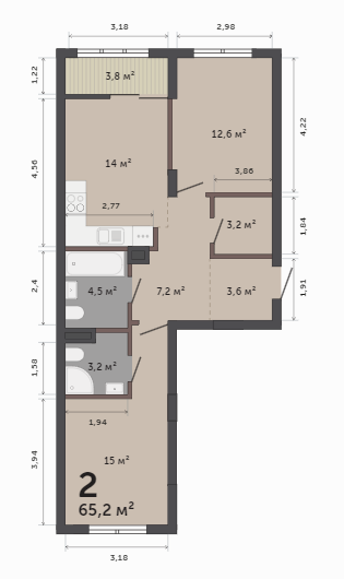 65.20 м² | 4 - 9 эт.