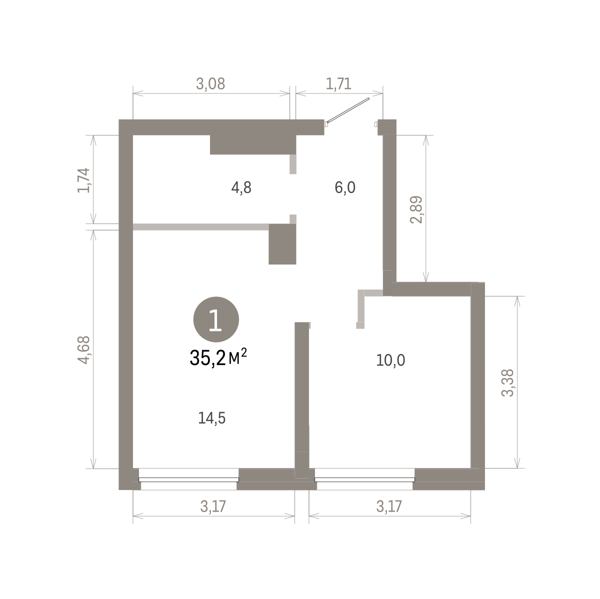 35.80 м² | 17 - 30 эт.