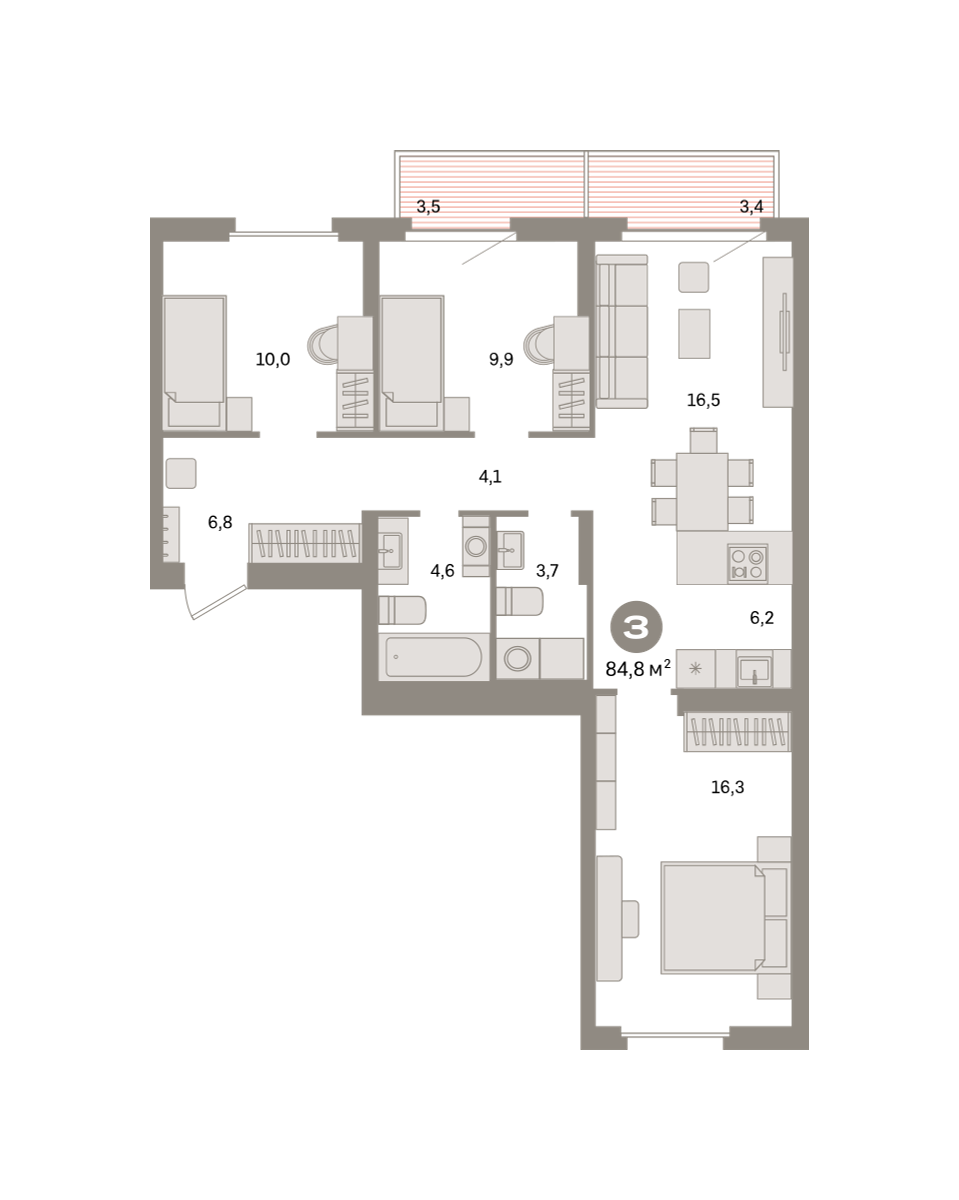 Продаётся с кладовой. Квартира с кухней-гостиной и тремя спальнями в квартале «Депо». Особенности планировки: окна на две стороны, второй санузел, вид во двор, разнесённые спальни, предчистовая отделка, балкон. № квартиры в нашей базе: ДЕП07-Ж5.4.1.