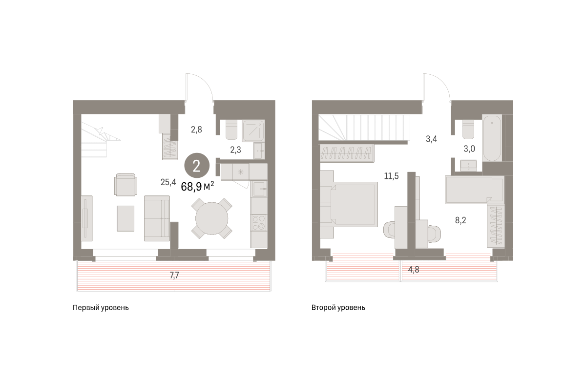 Продаётся с кладовой. Квартира с кухней-гостиной и двумя спальнями в Бруснике в Академическом. Особенности планировки: второй санузел, разнесённые спальни, предчистовая отделка, балкон, терраса на крыше. № квартиры в нашей базе: АКД04-Ж3.8.3.