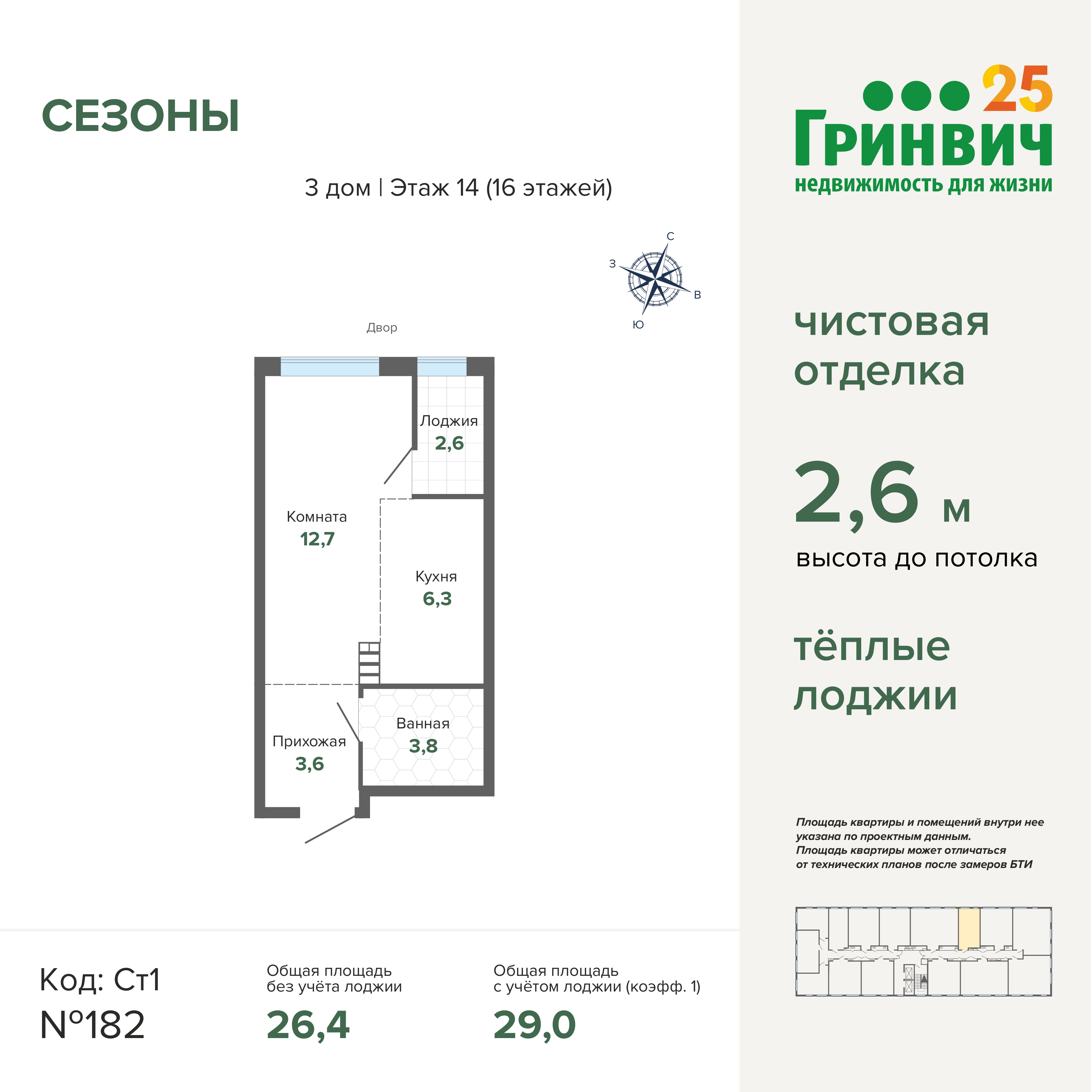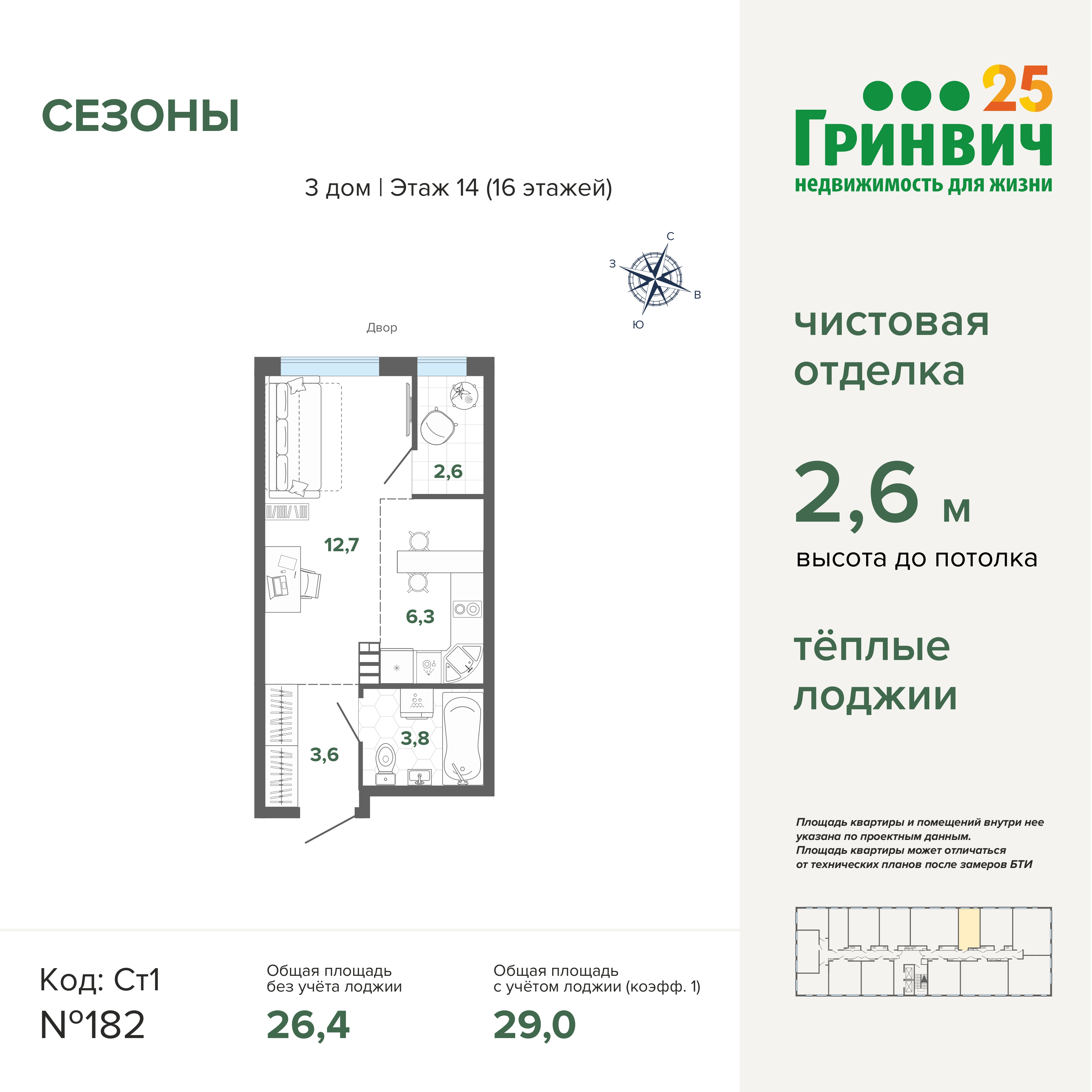 Новая квартира с чистовой отделкой в жилом комплексе "Сезоны дом 3" с установленным кухонным гарнитуром.