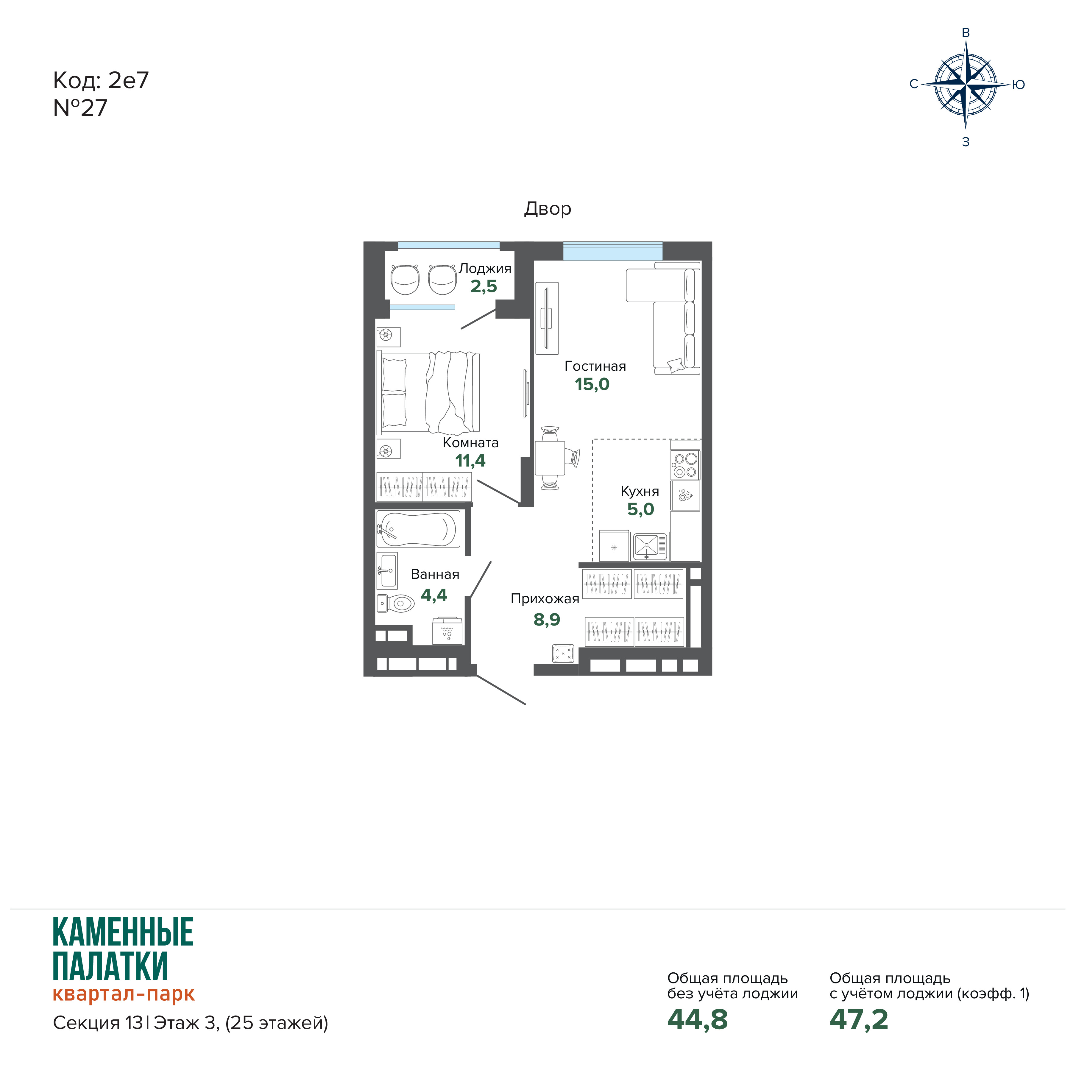 47.24 м² | 3 - 25 эт.