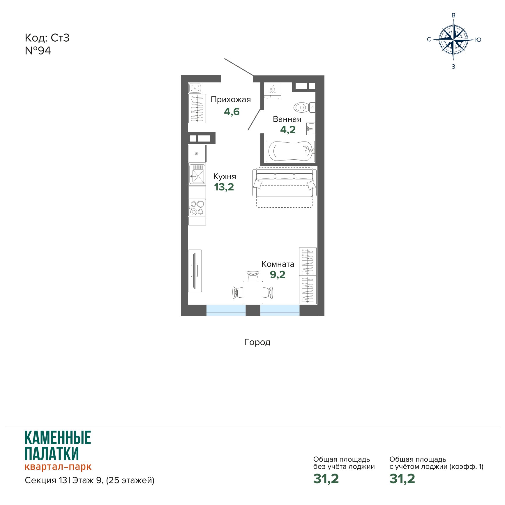 31.23 м² | 9 - 25 эт.