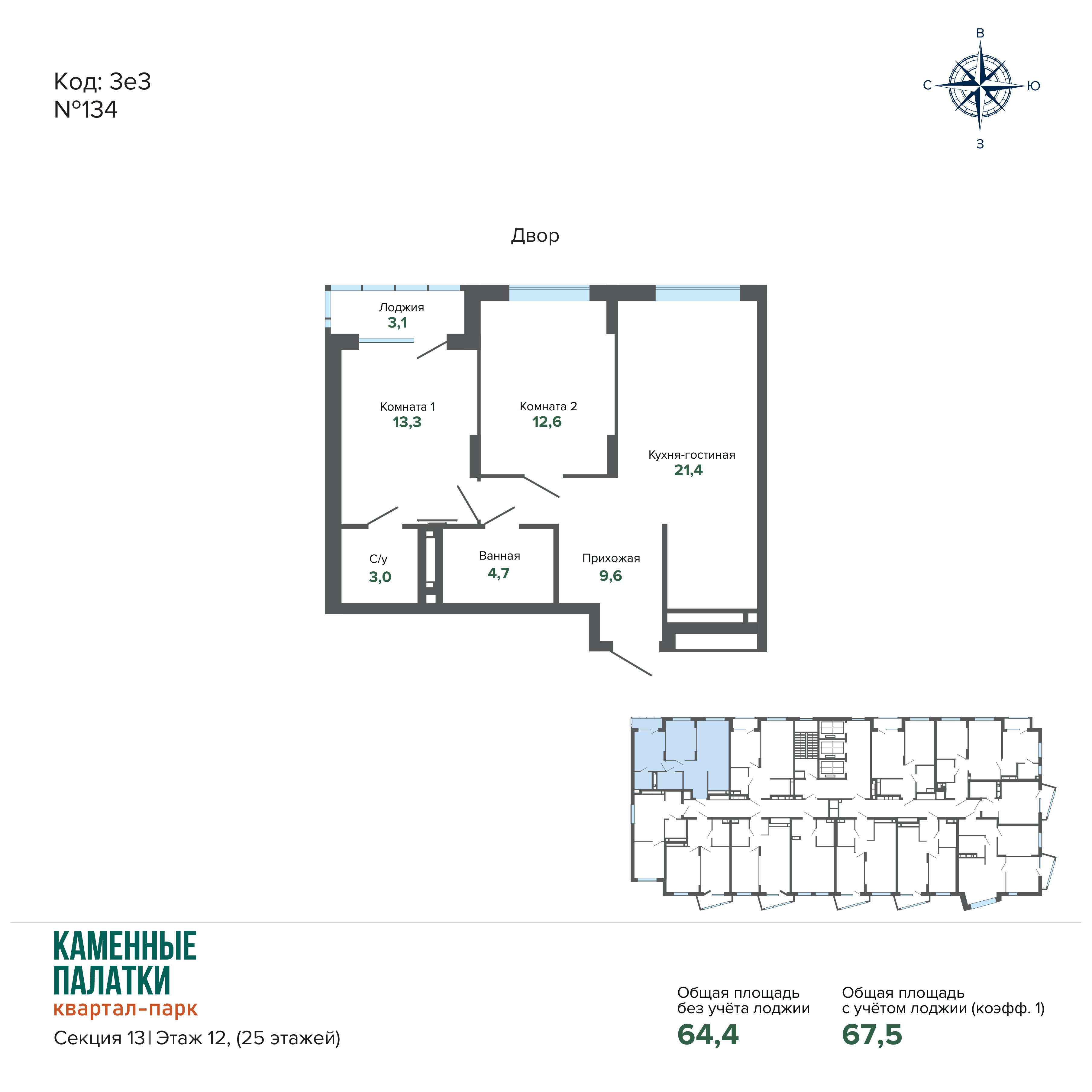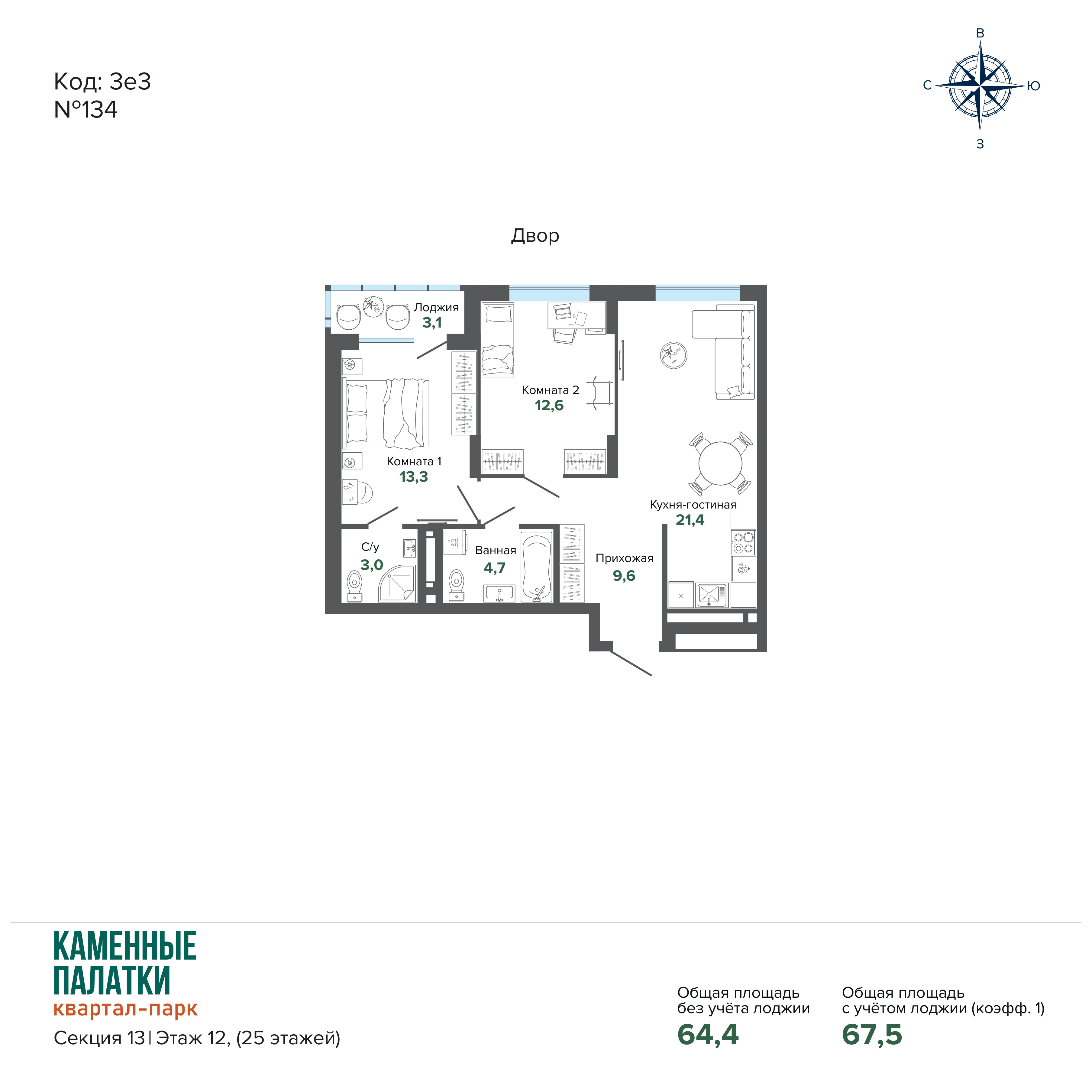 67.54 м² | 12 - 25 эт.