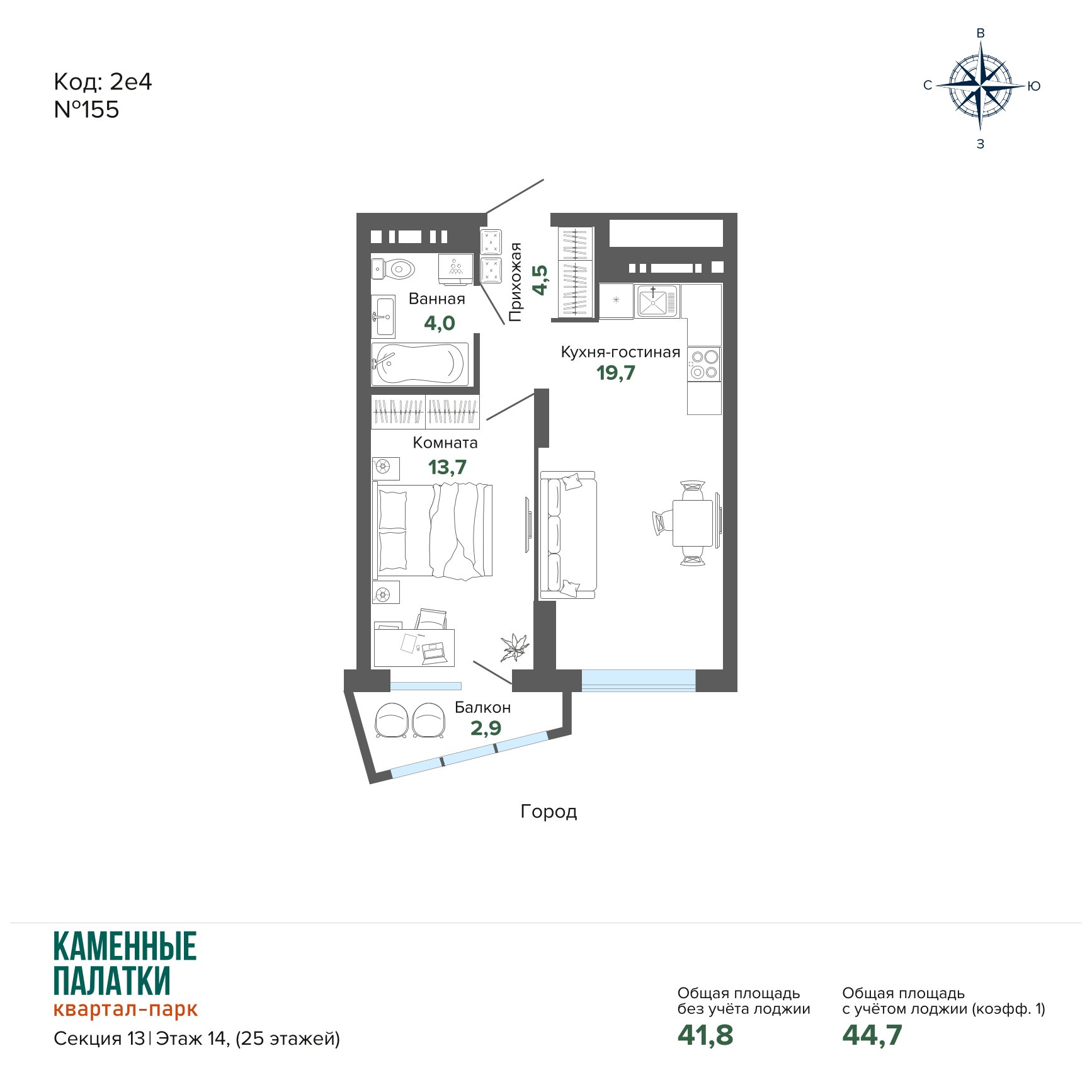 44.70 м² | 14 - 25 эт.