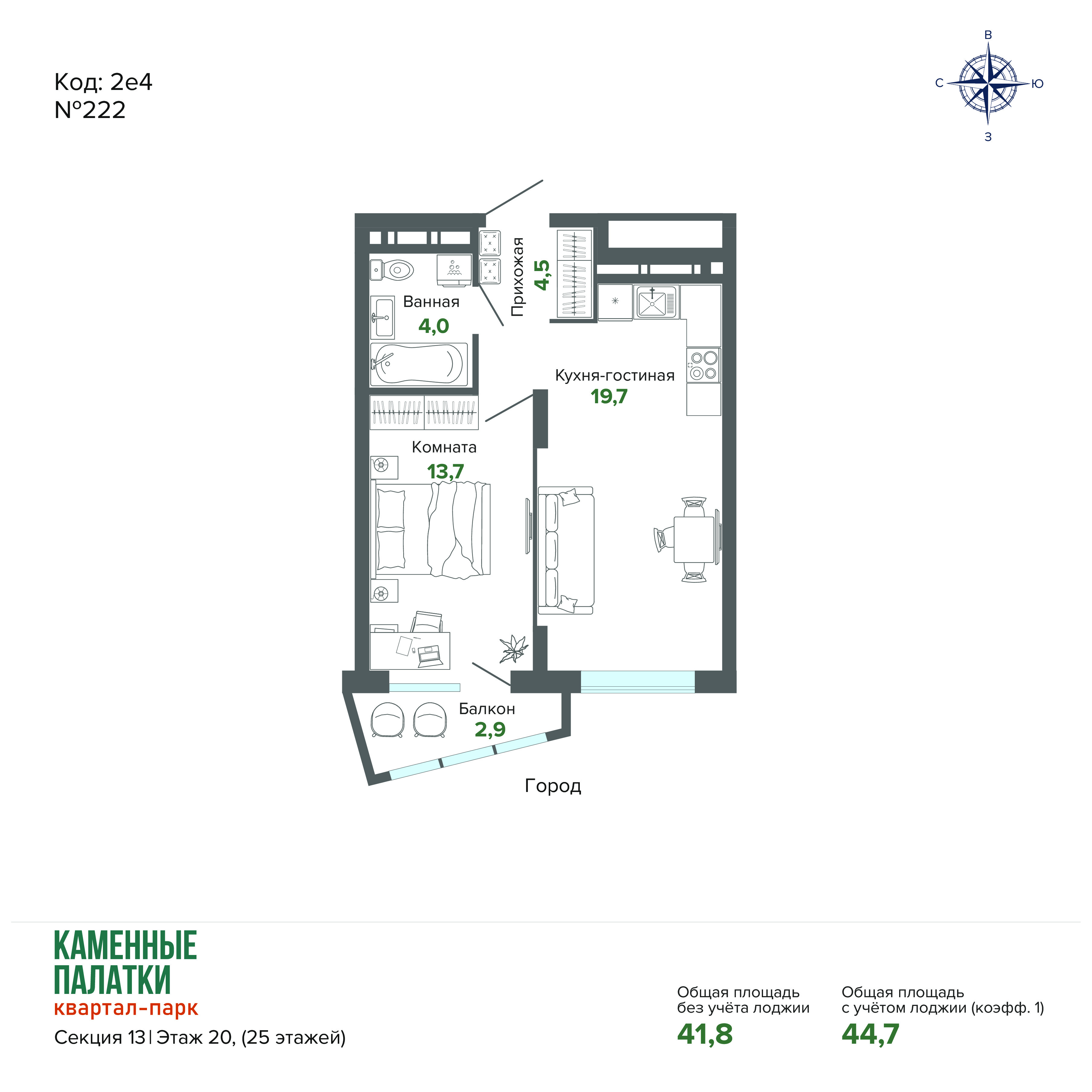 44.70 м² | 20 - 25 эт.