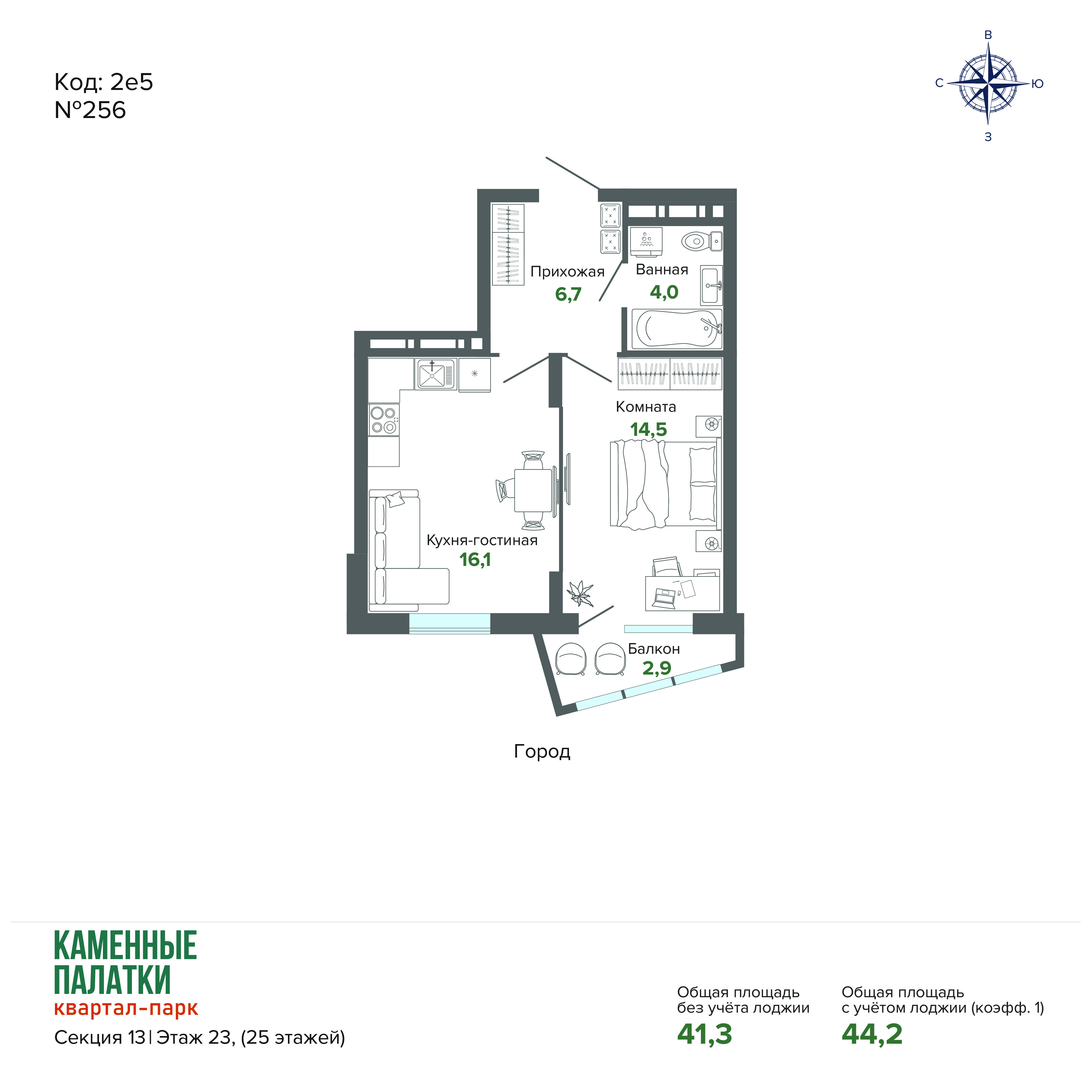 44.17 м² | 23 - 25 эт.