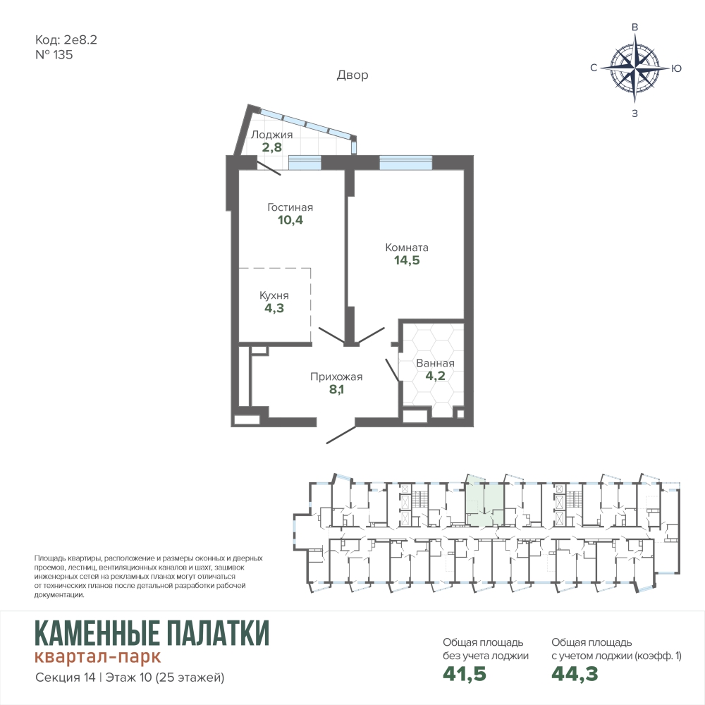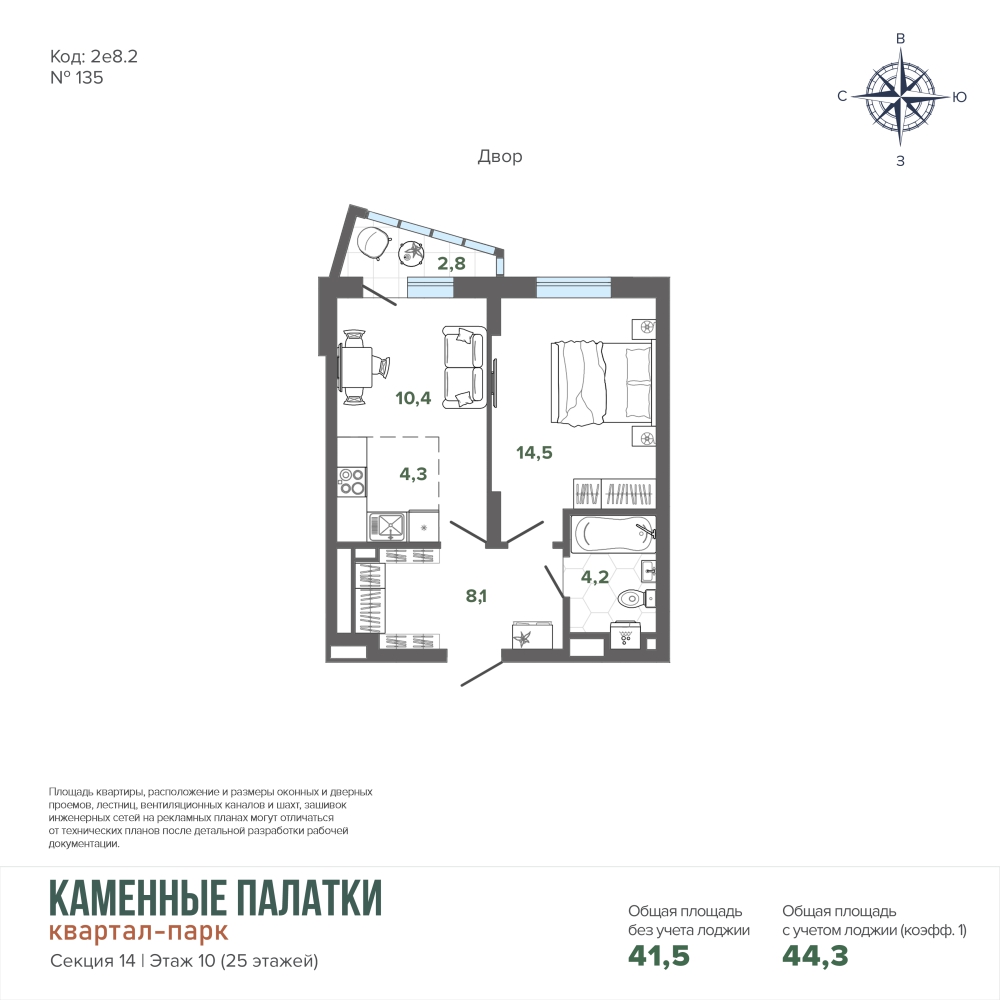 44.32 м² | 10 - 25 эт.