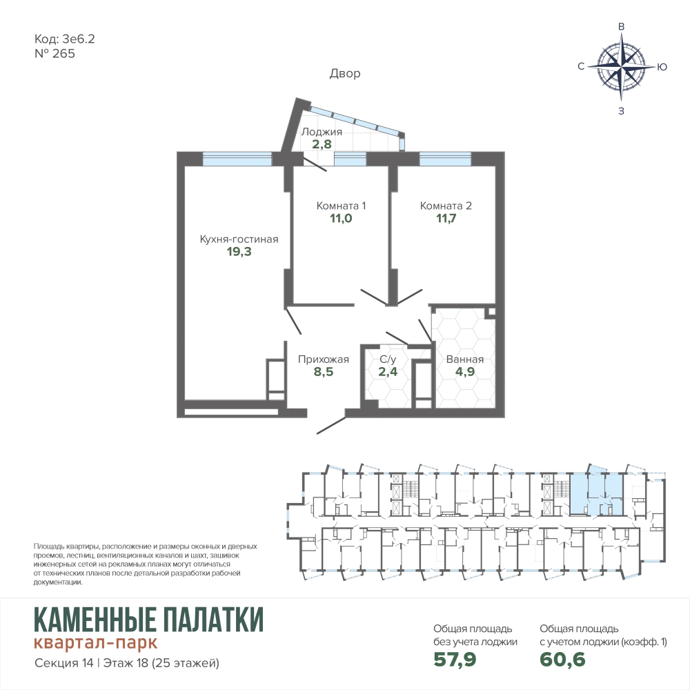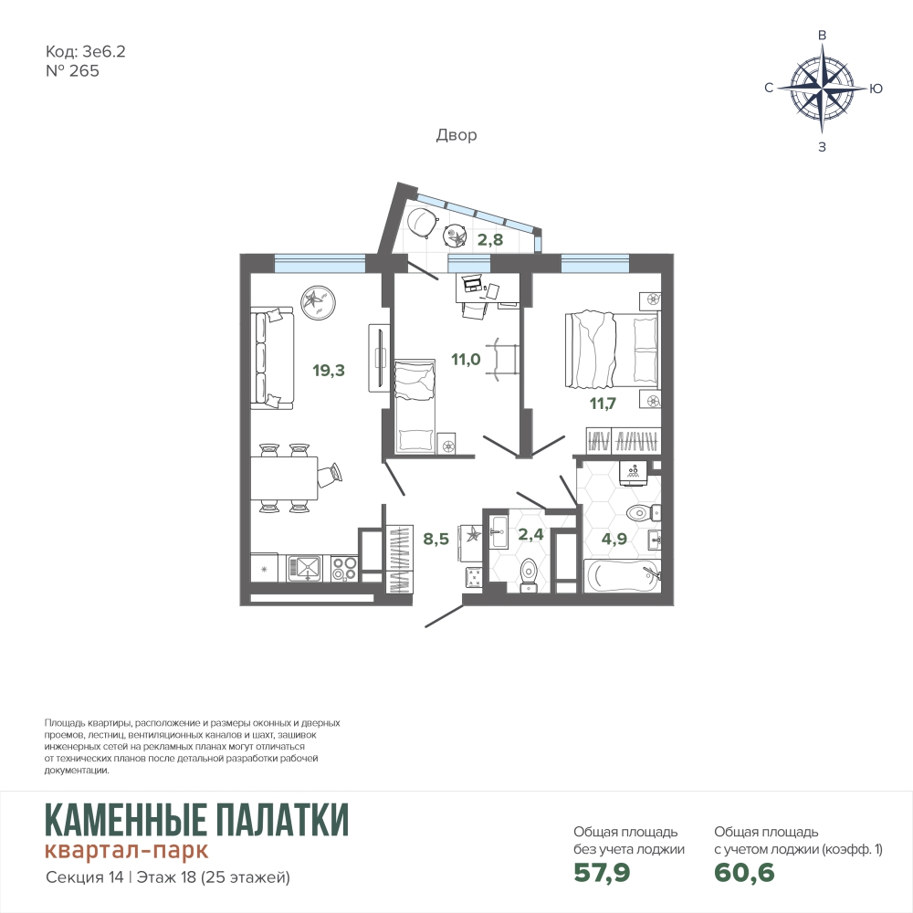 59.50 м² | 18 - 19 эт.