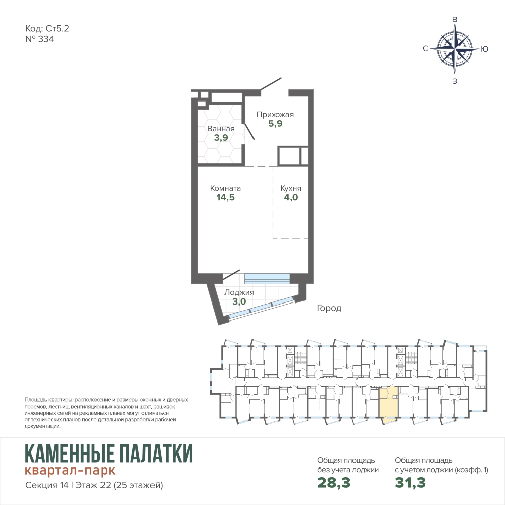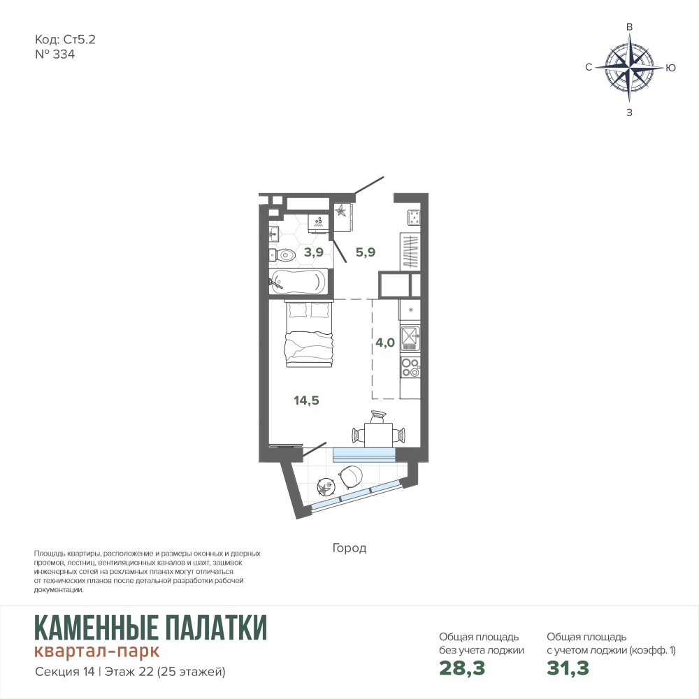 31.33 м² | 22 - 25 эт.
