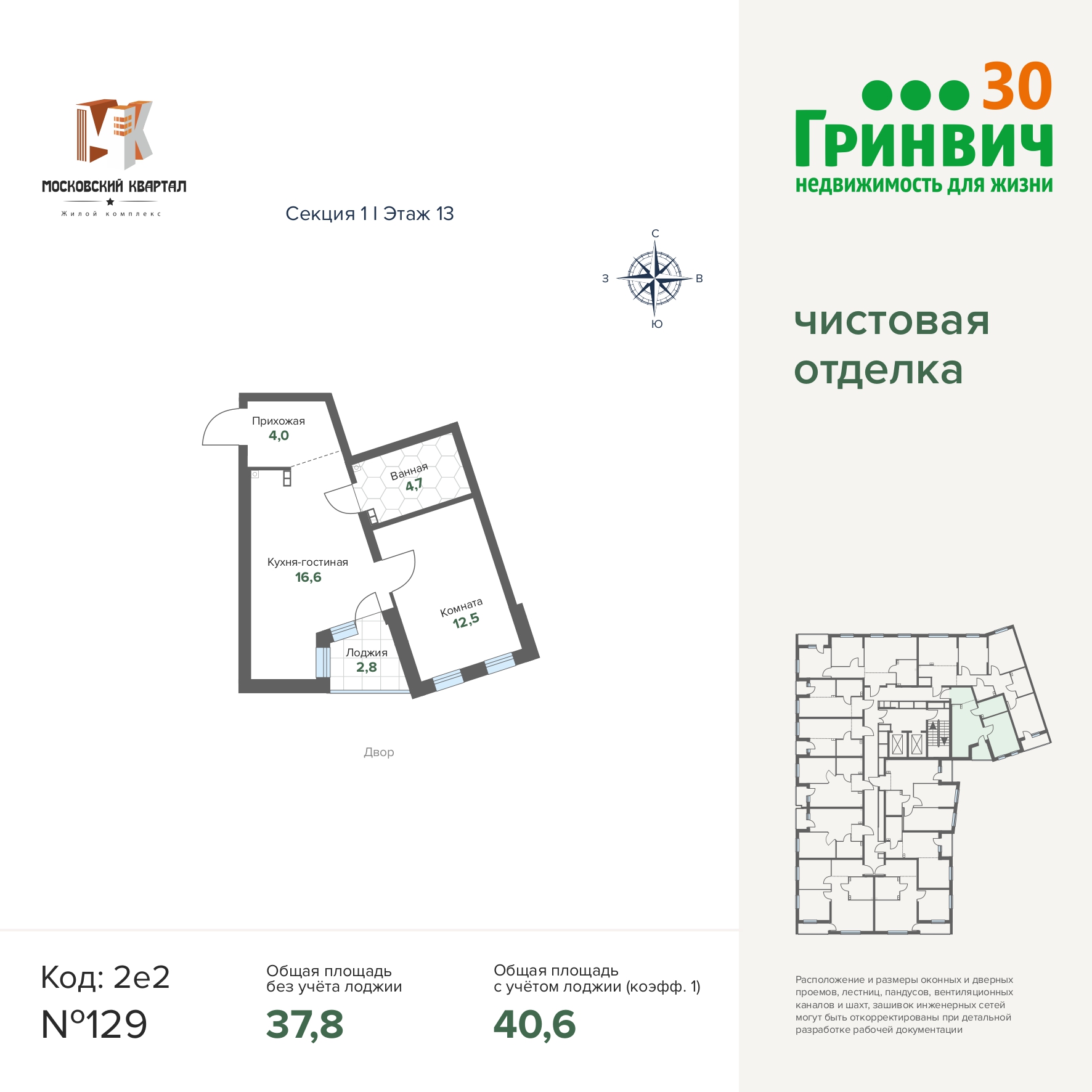 1-к квартира | 42.20 м² | 16 - 16 эт.