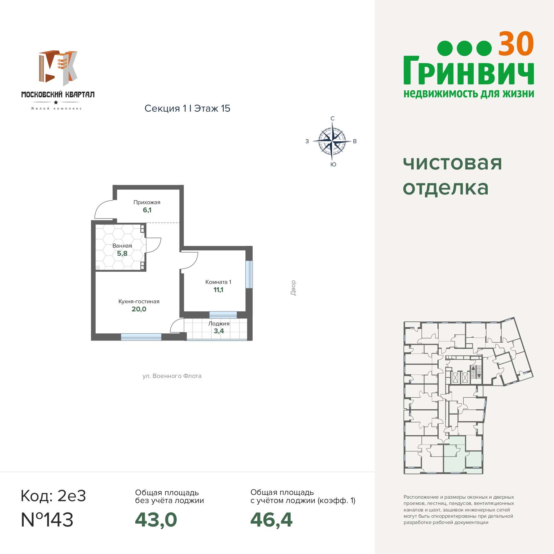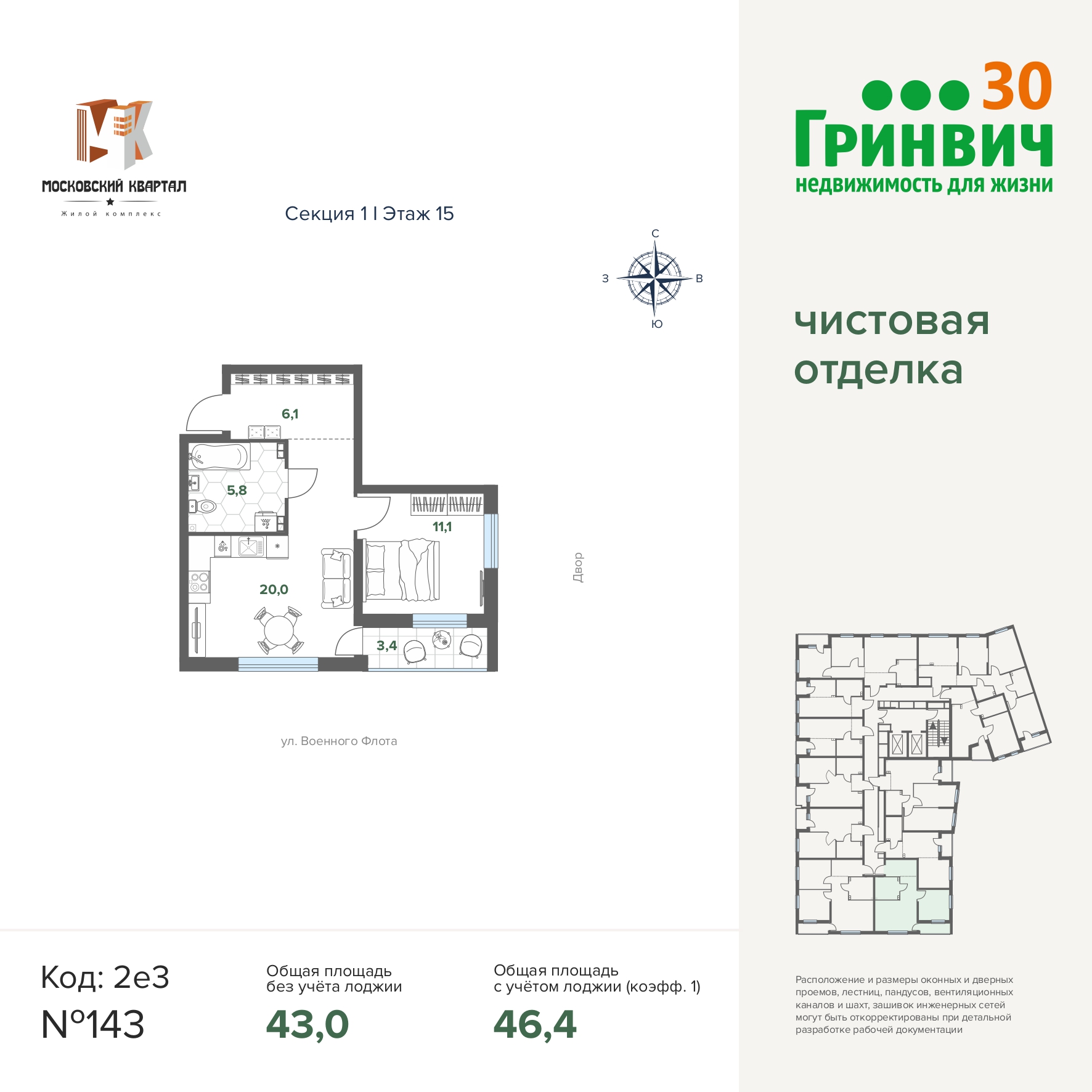 46.42 м² | 15 - 17 эт.