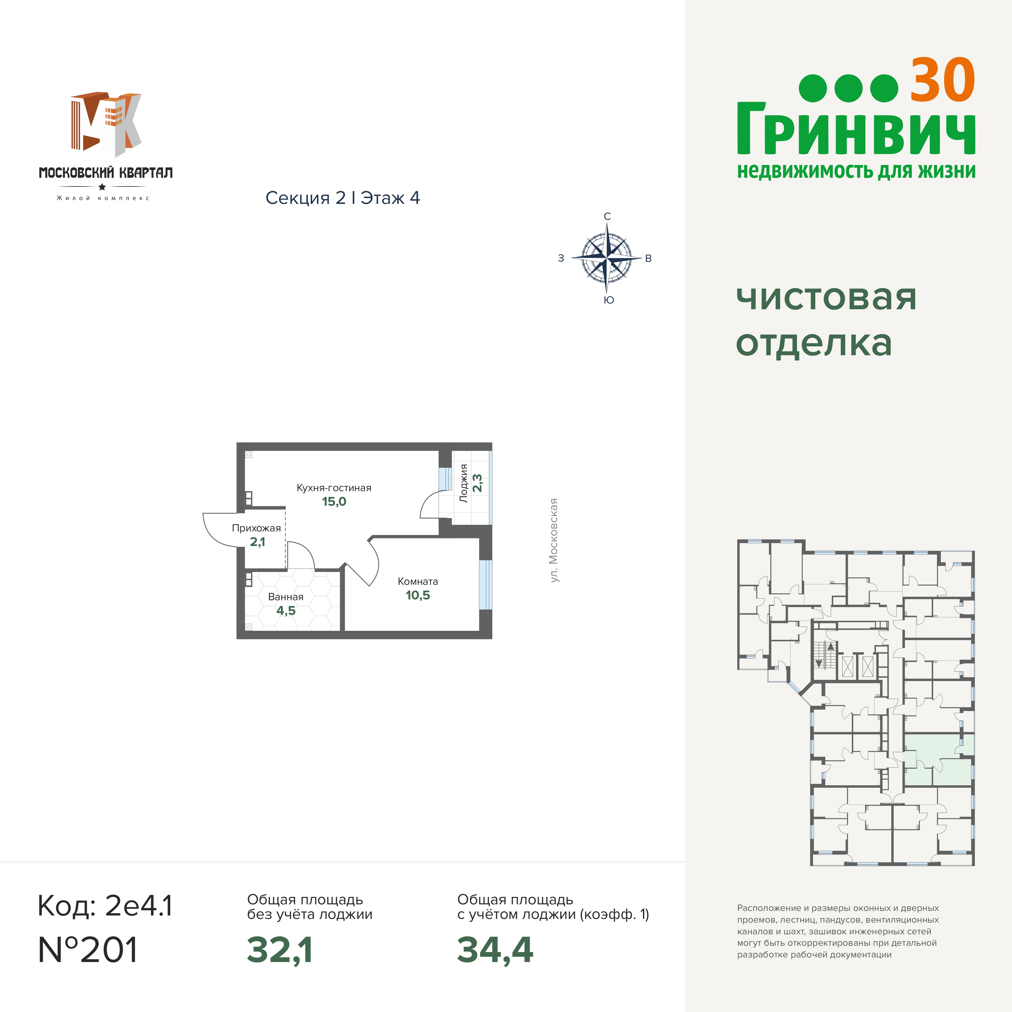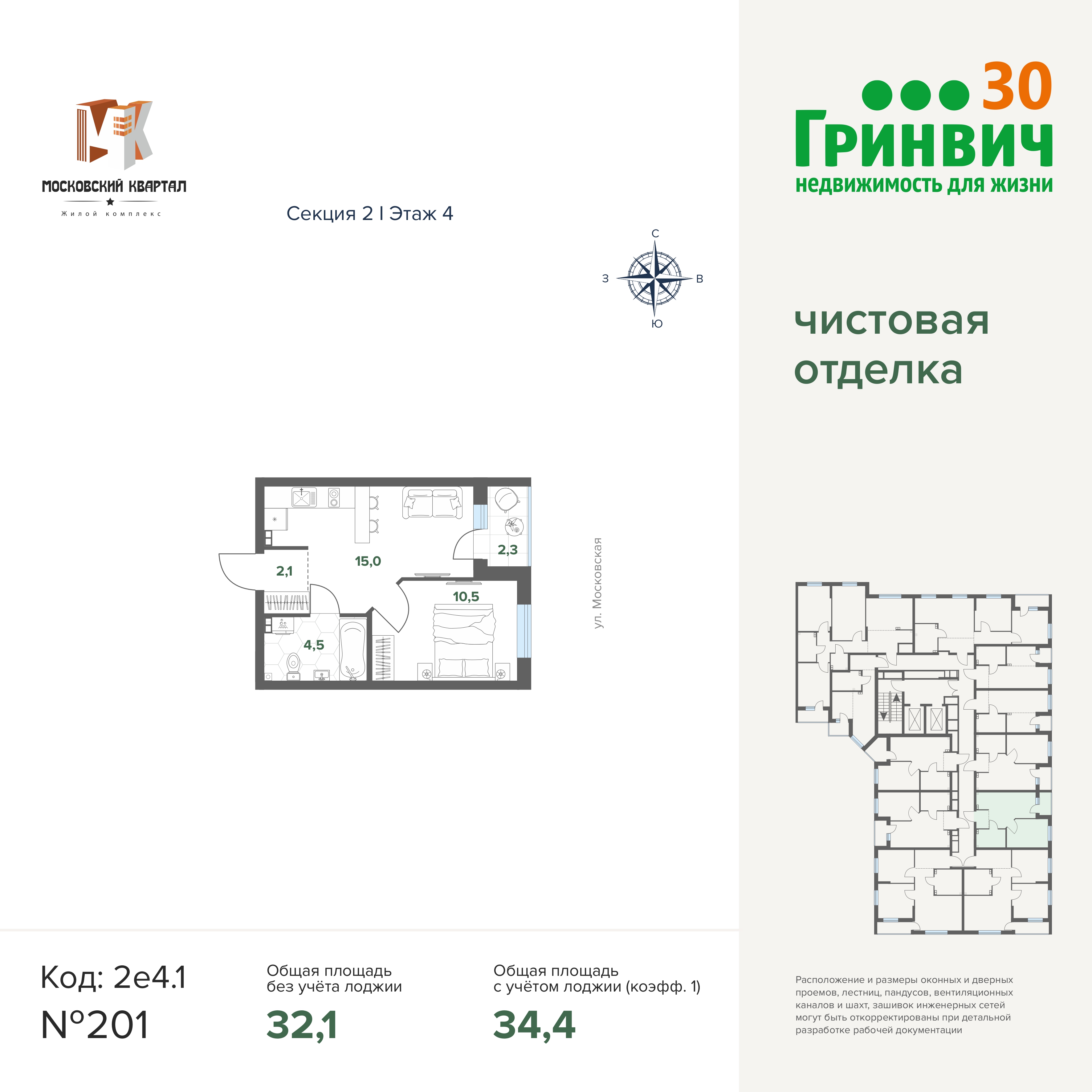 34.36 м² | 4 - 17 эт.