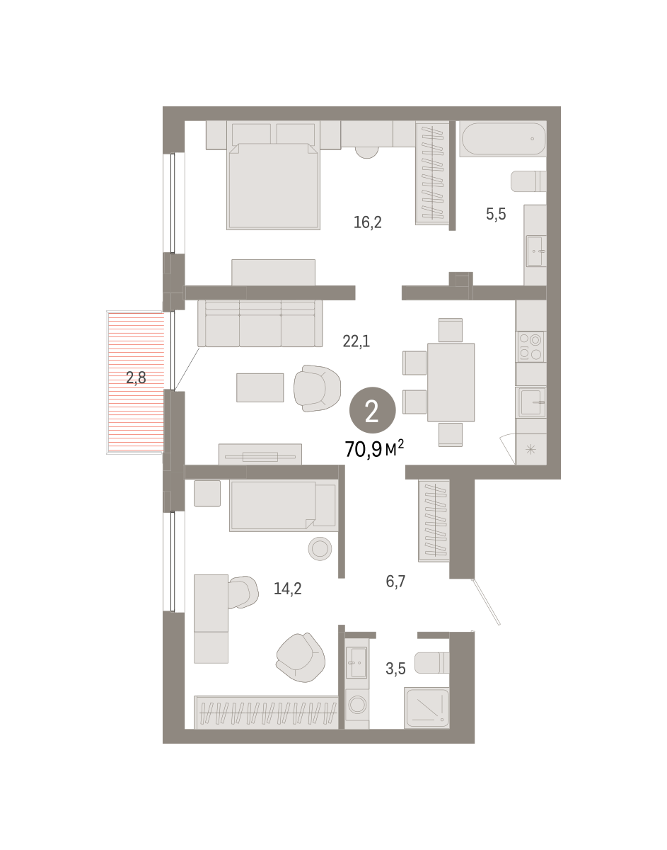 Продаётся с кладовой. Квартира с кухней-гостиной и двумя спальнями в Южных кварталах. Особенности планировки: вид во двор, разнесённые спальни, предчистовая отделка, мастер-спальня, балкон. № квартиры в нашей базе: ЮКВ11-Ж2.8.1.