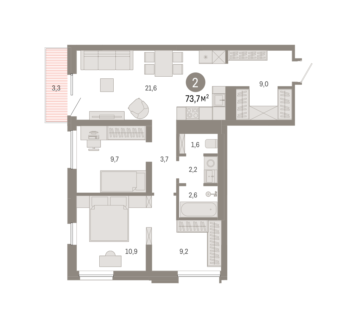 Двухкомнатная квартира в «Северном квартале» — это квартира с объединенной кухней-гостиной, двумя спальнями, ванной комнатой и гостевым туалетом. В квартире предусмотрены ниши под хранение вещей и гардеробные комнаты. Купить квартиру выгодно напрямую от застройщика Брусника.