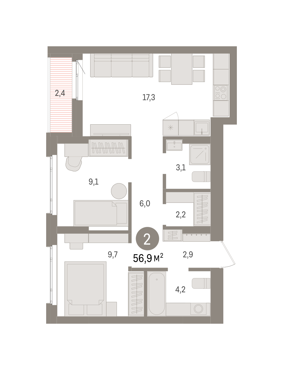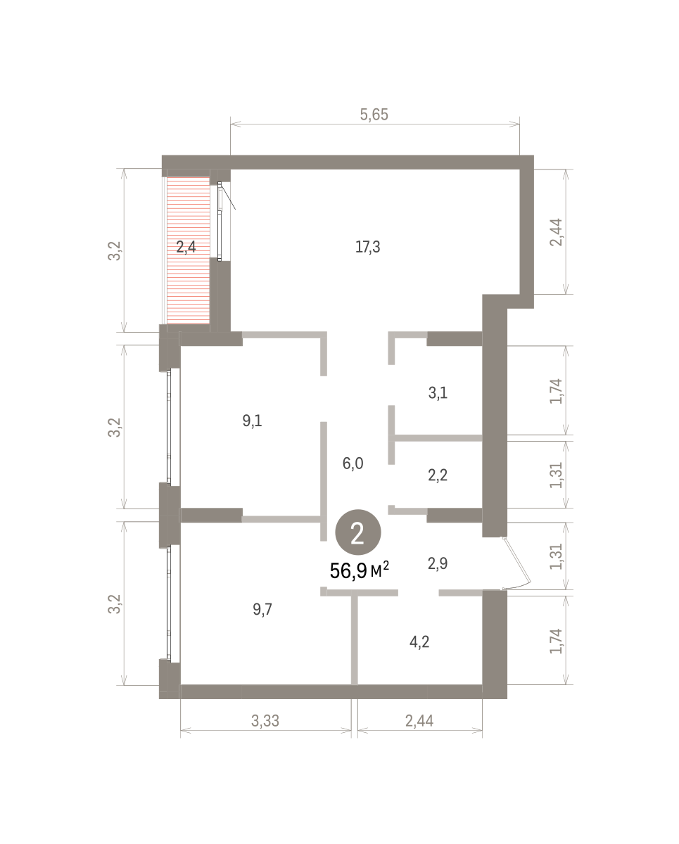 56.00 м² | 2 - 16 эт.