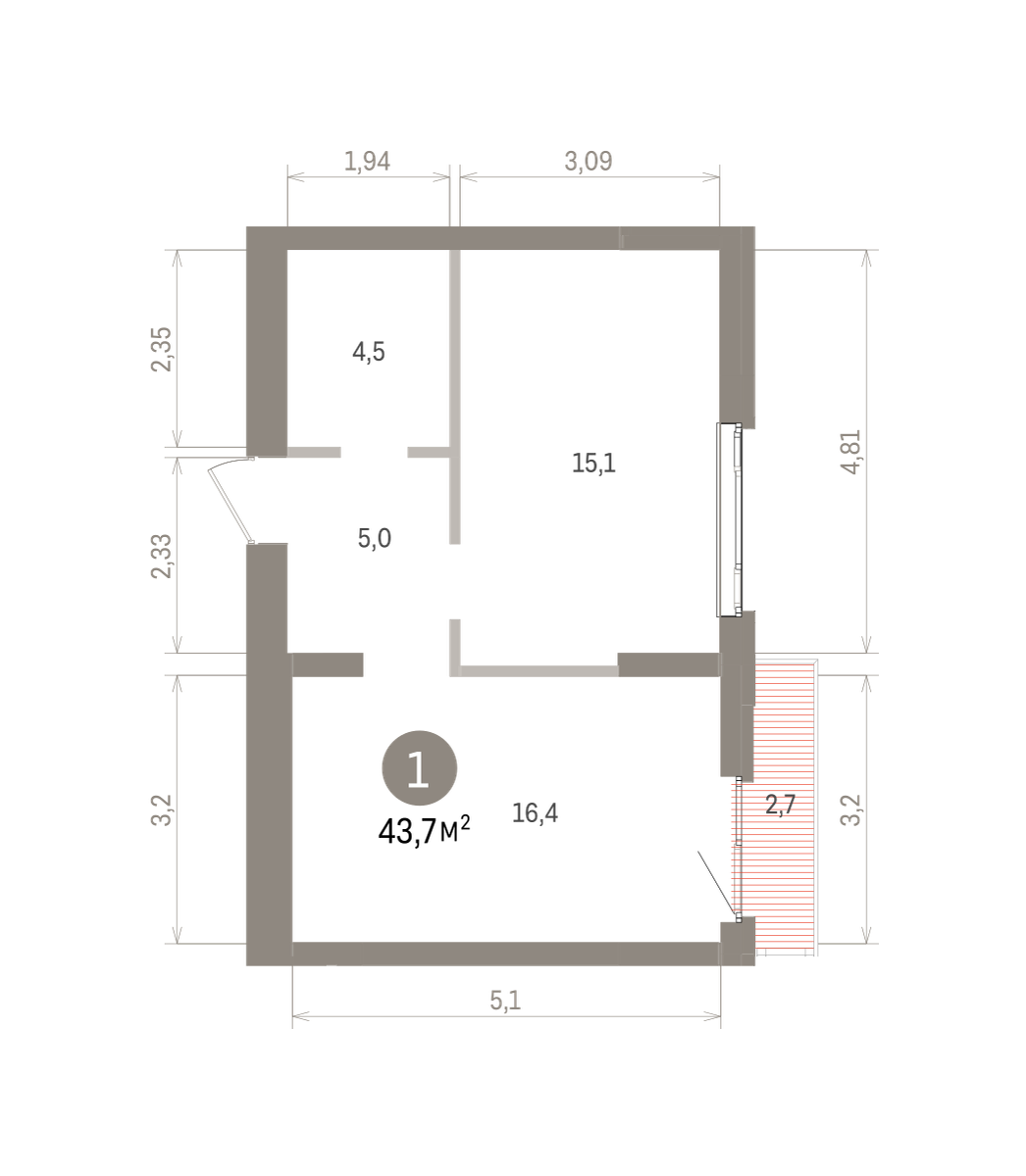 43.00 м² | 5 - 7 эт.