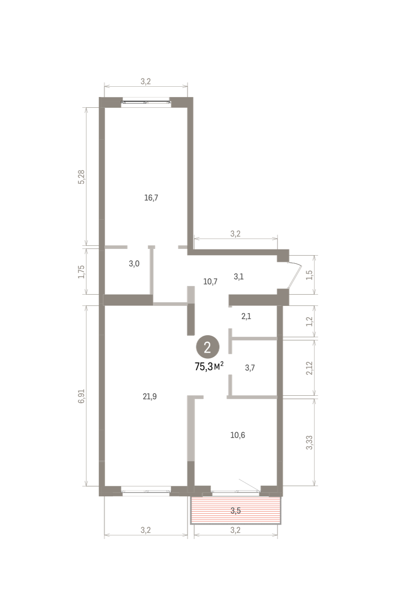 21.00 м² | 5 - 9 эт.