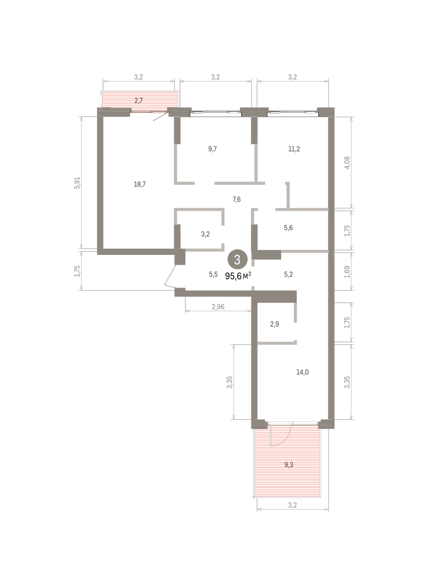 3-к квартира | 90.00 м² | 3 - 21 эт.
