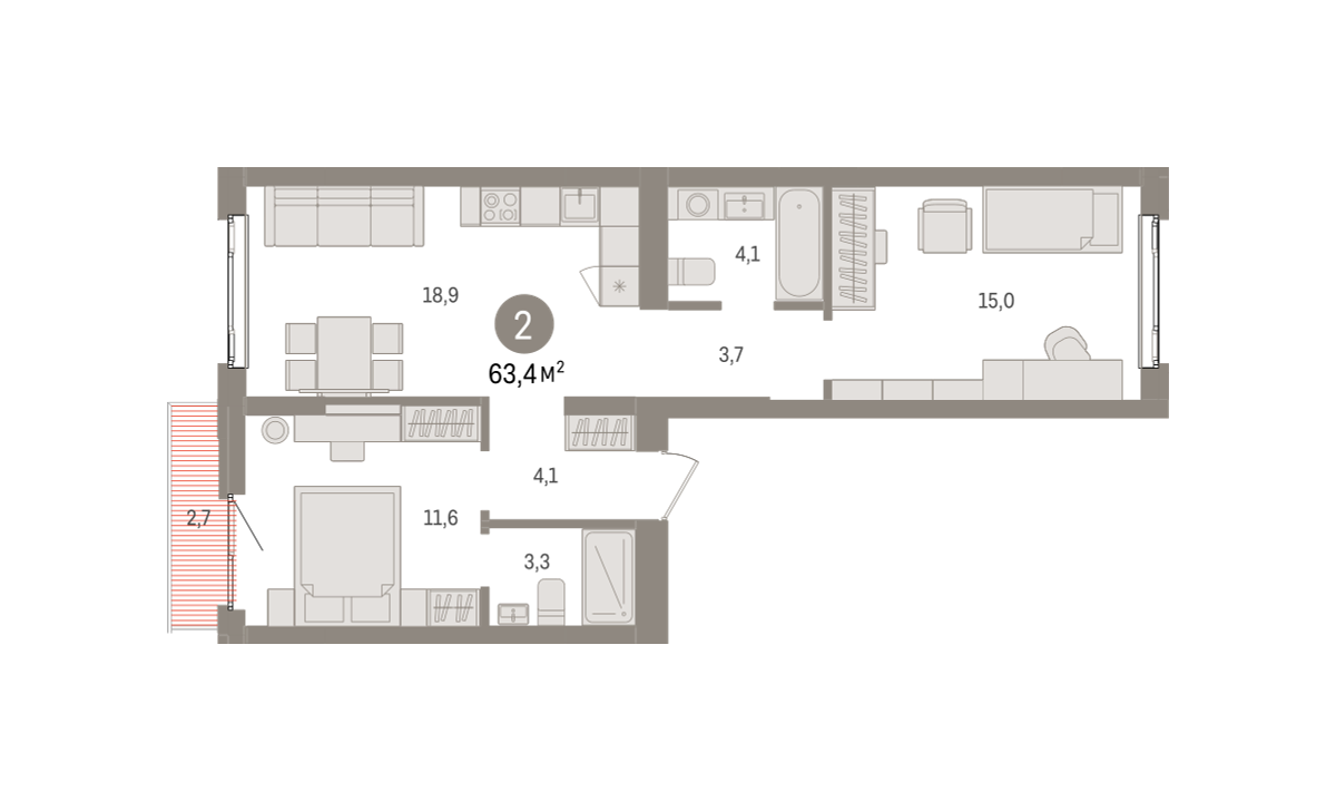 63.00 м² | 4 - 7 эт.