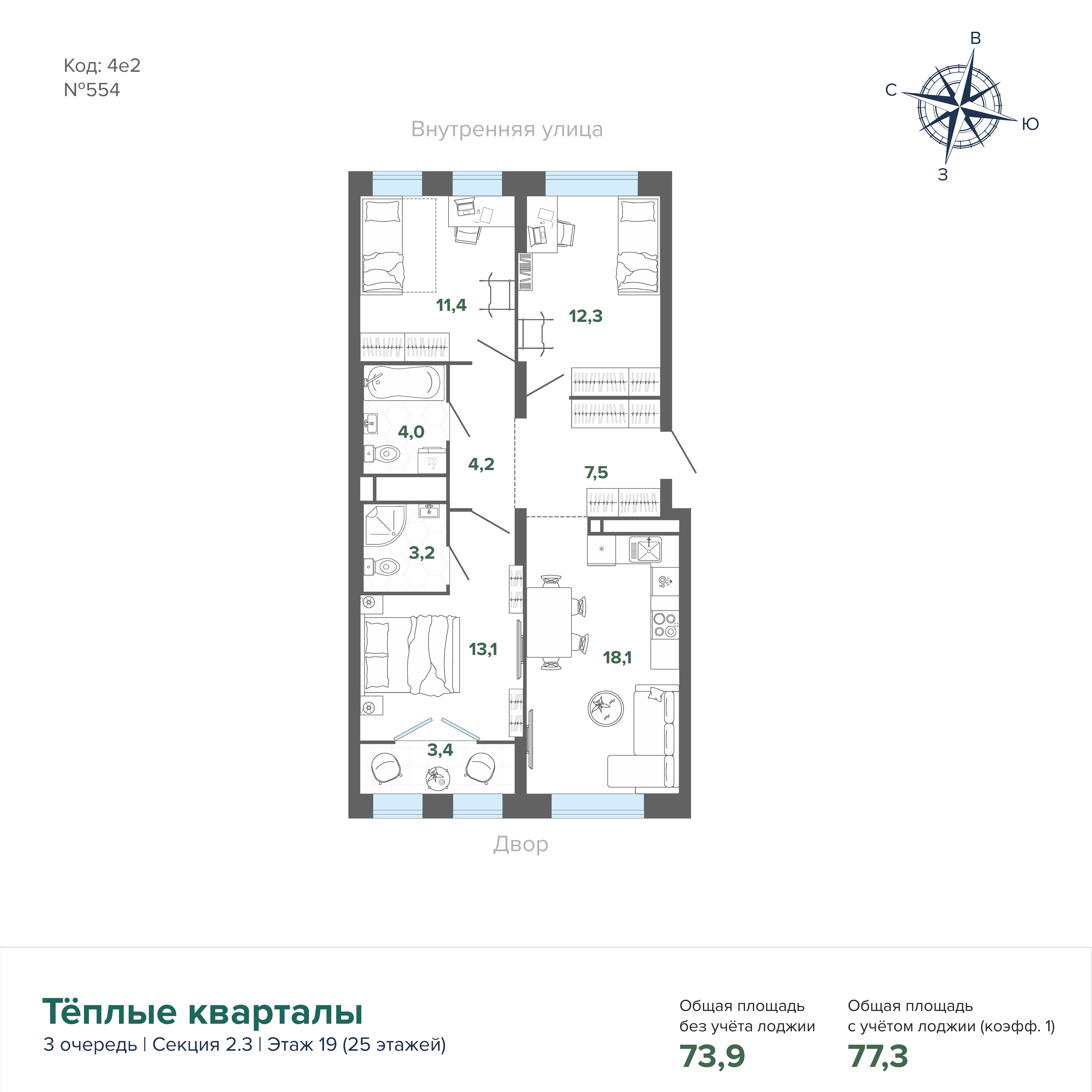 Теплые кварталы - квартальная застройка переменной этажности (от 7 до 25).Комплекс будет состоять из 5 очередей. В продаже 3 очередь, дом 2 - переменной этажности. Строительство уже ведется.