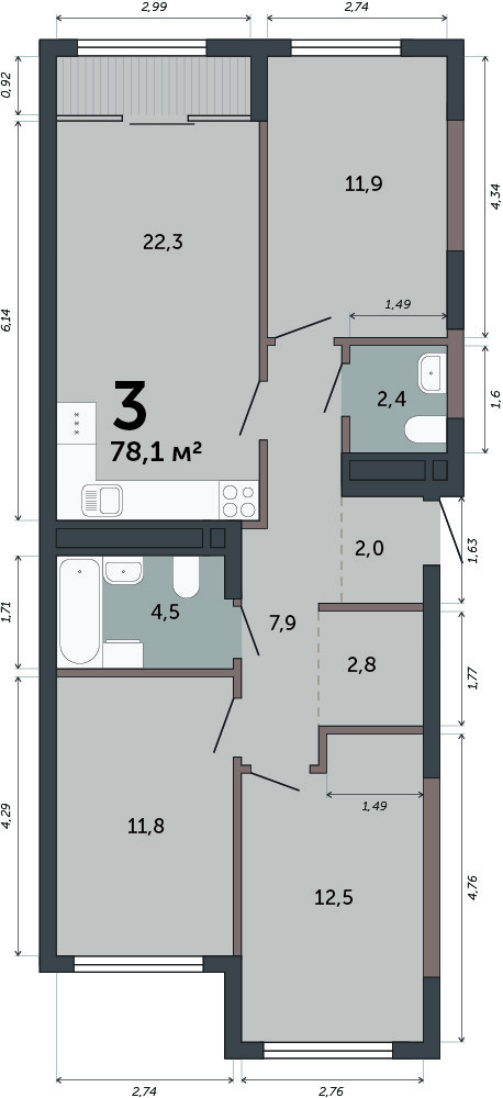 78.10 м² | 3 - 15 эт.