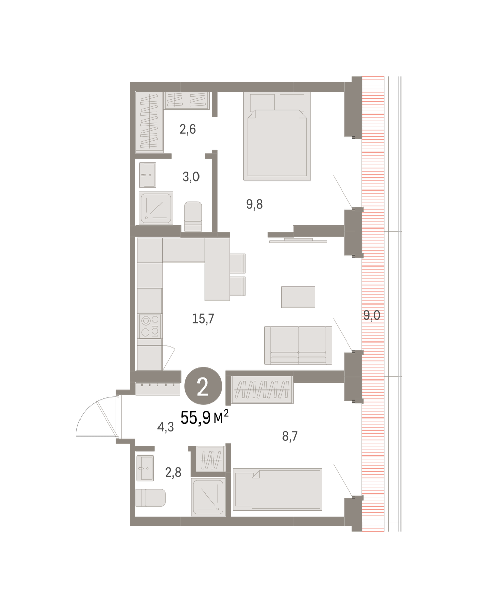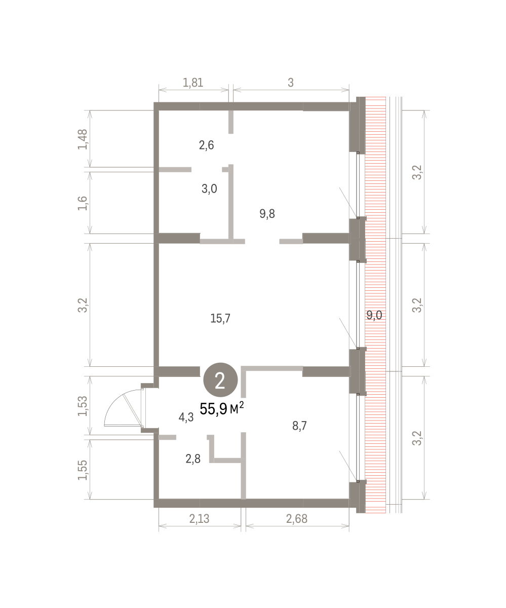 56.00 м² | 2 - 16 эт.
