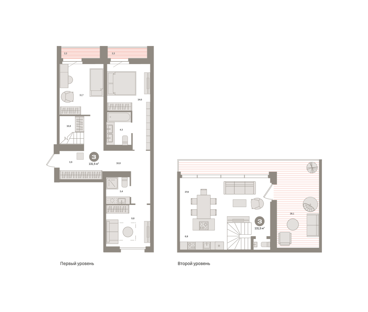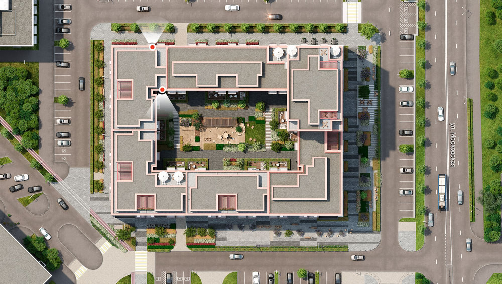 Квартира с кухней-гостиной и тремя спальнями в Южных кварталах. Особенности планировки: вид во двор, летняя кухня на крыше, лоджия, мастер-спальня, окна на две стороны, предчистовая отделка, разнесённые спальни, терраса на крыше.