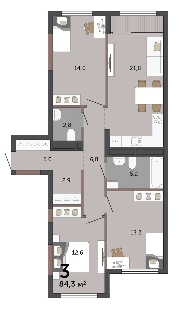 3-к квартира | 90.00 м² | 3 - 21 эт.