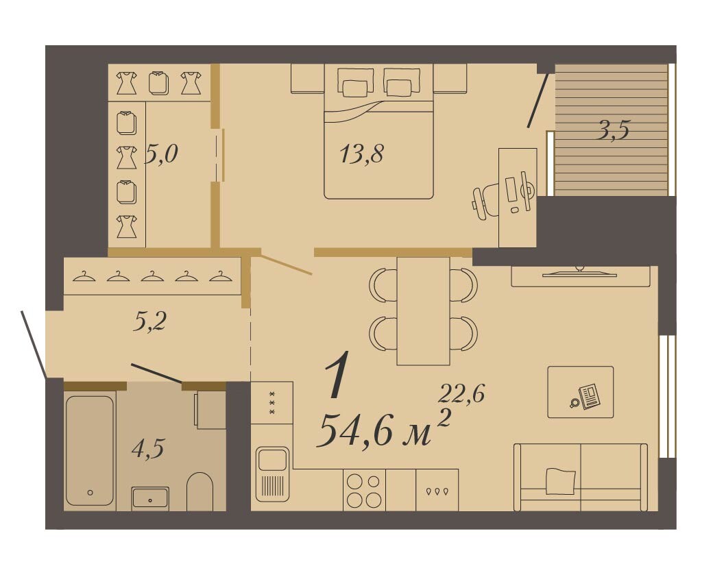 54.70 м² | 5 - 8 эт.