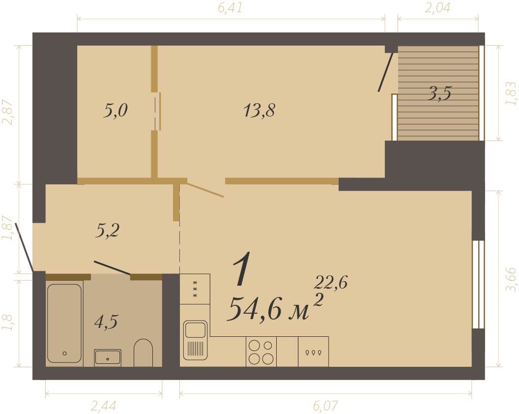 54.60 м² | 4 - 8 эт.