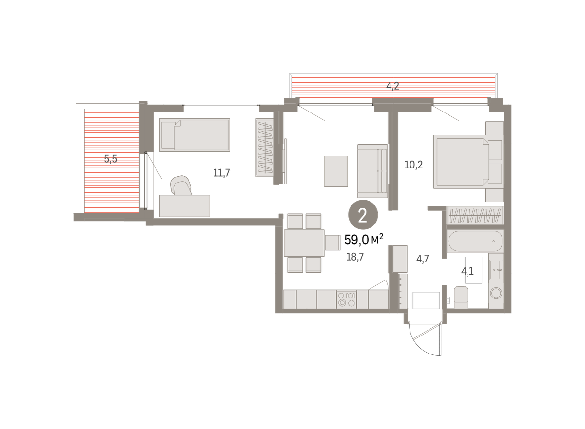 59.00 м² | 9 - 9 эт.