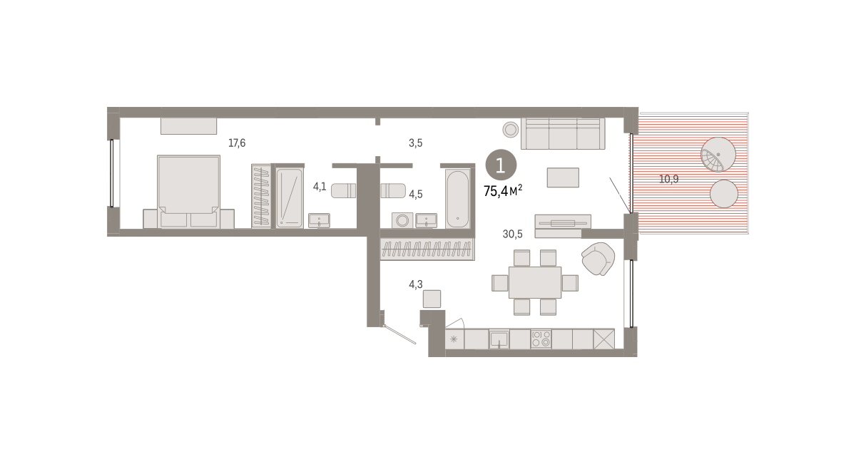 Продаётся с кладовой. Квартира с кухней-гостиной и одной спальней в Южных кварталах. Особенности планировки: вид во двор, мастер-спальня, окна на две стороны, предчистовая отделка, терраса. № квартиры в нашей базе: ЮКВ11-Ж4.2.8.