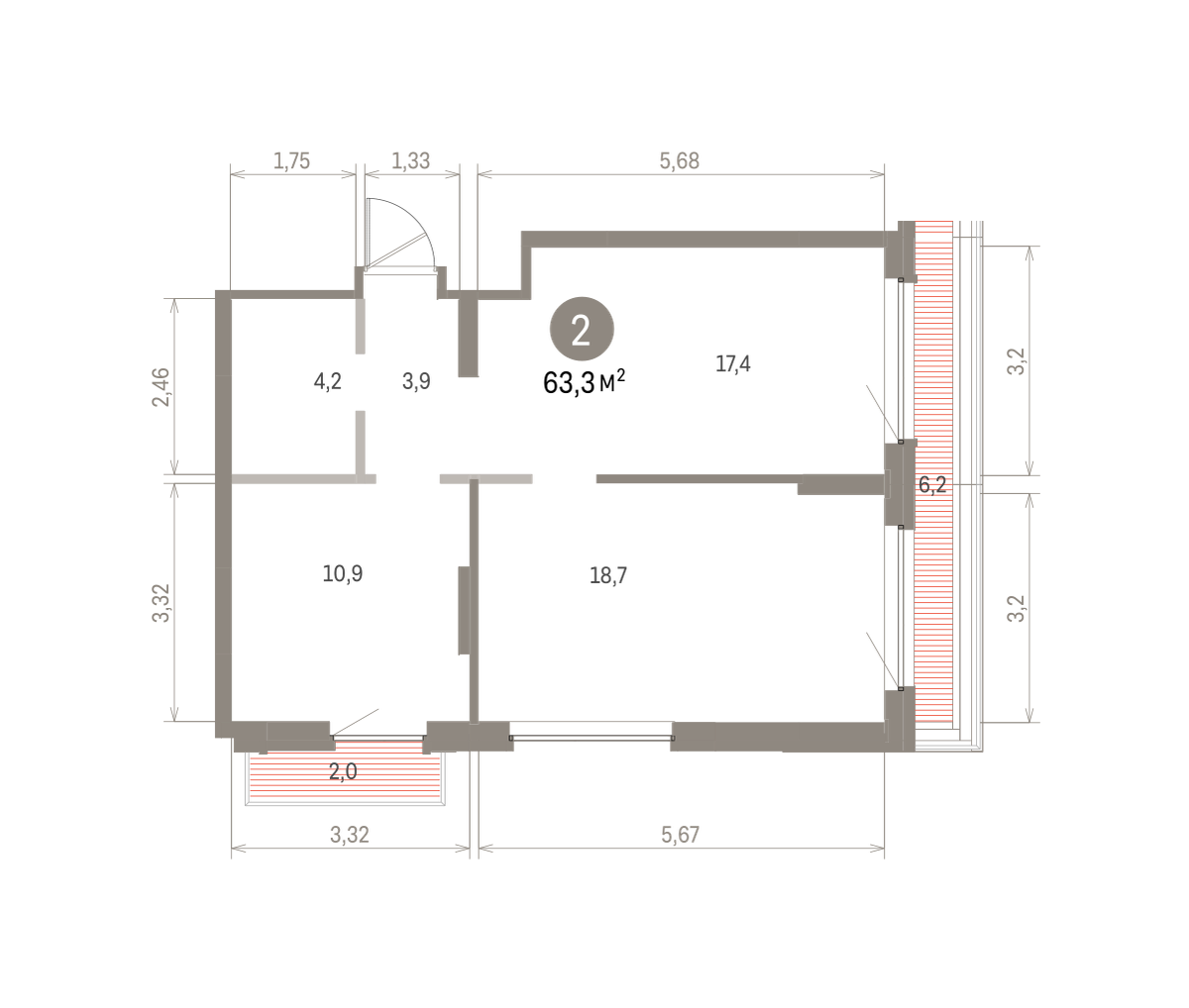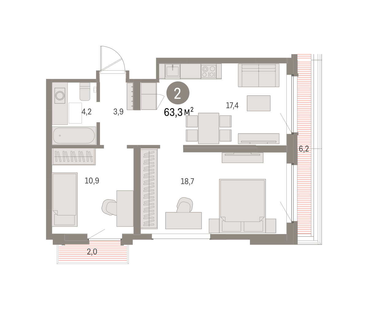 Продаётся с кладовой. Квартира с кухней-гостиной и двумя спальнями в Бруснике в Академическом. Особенности планировки: балкон, предчистовая отделка, терраса на крыше. № квартиры в нашей базе: АКД05-Ж5.7.4.