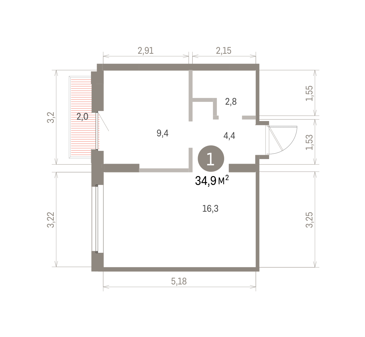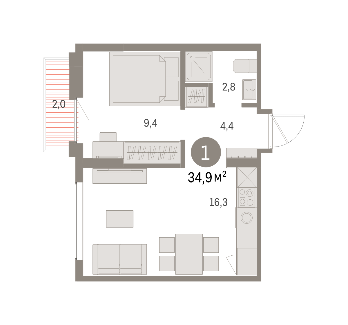 34.20 м² | 14 - 16 эт.