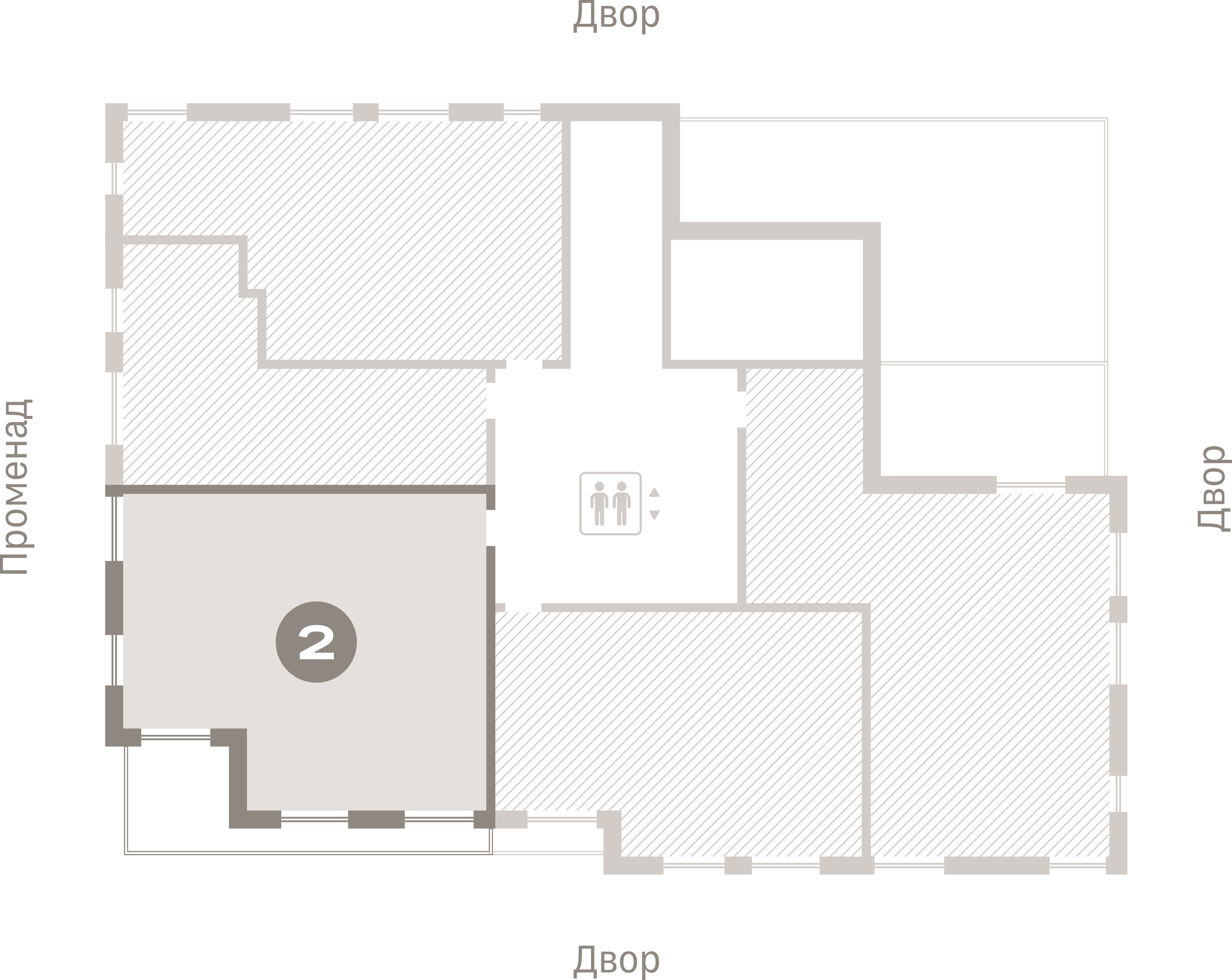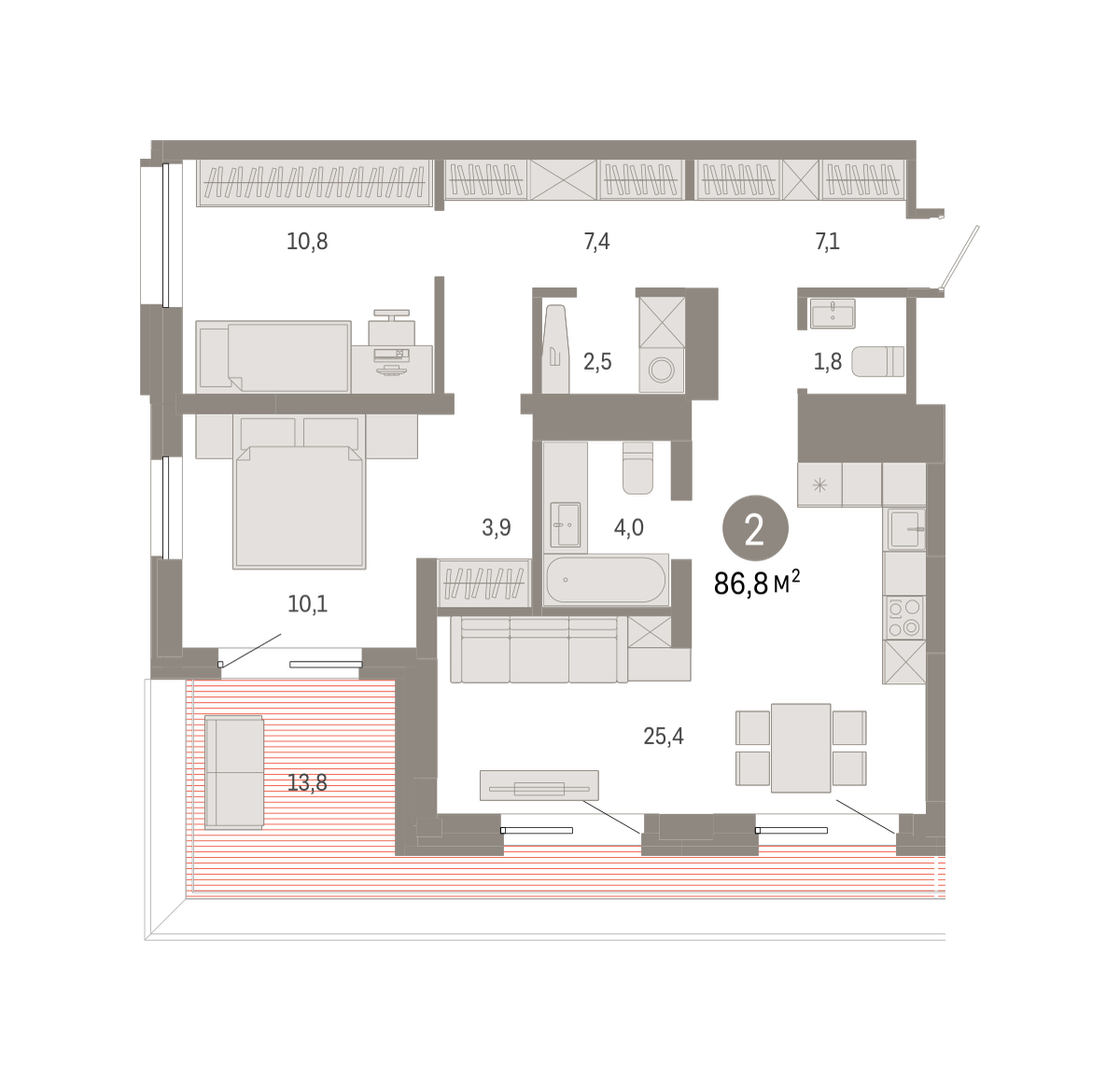 Квартира с кухней-гостиной и двумя спальнями в Северном квартале. Особенности планировки: вид во двор, второй санузел, гардеробная, постирочная, предчистовая отделка, терраса на крыше. № квартиры в нашей базе: СКВ03.2-Ж5.7.3.
