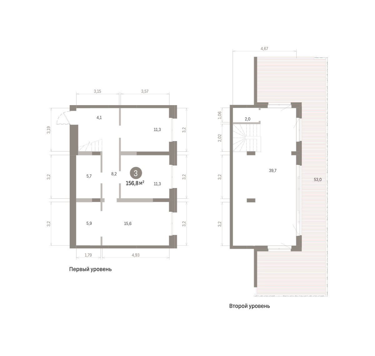 Двухуровневая квартира с кухней-гостиной и тремя спальнями в Южных кварталах. Особенности планировки: предчистовая отделка.