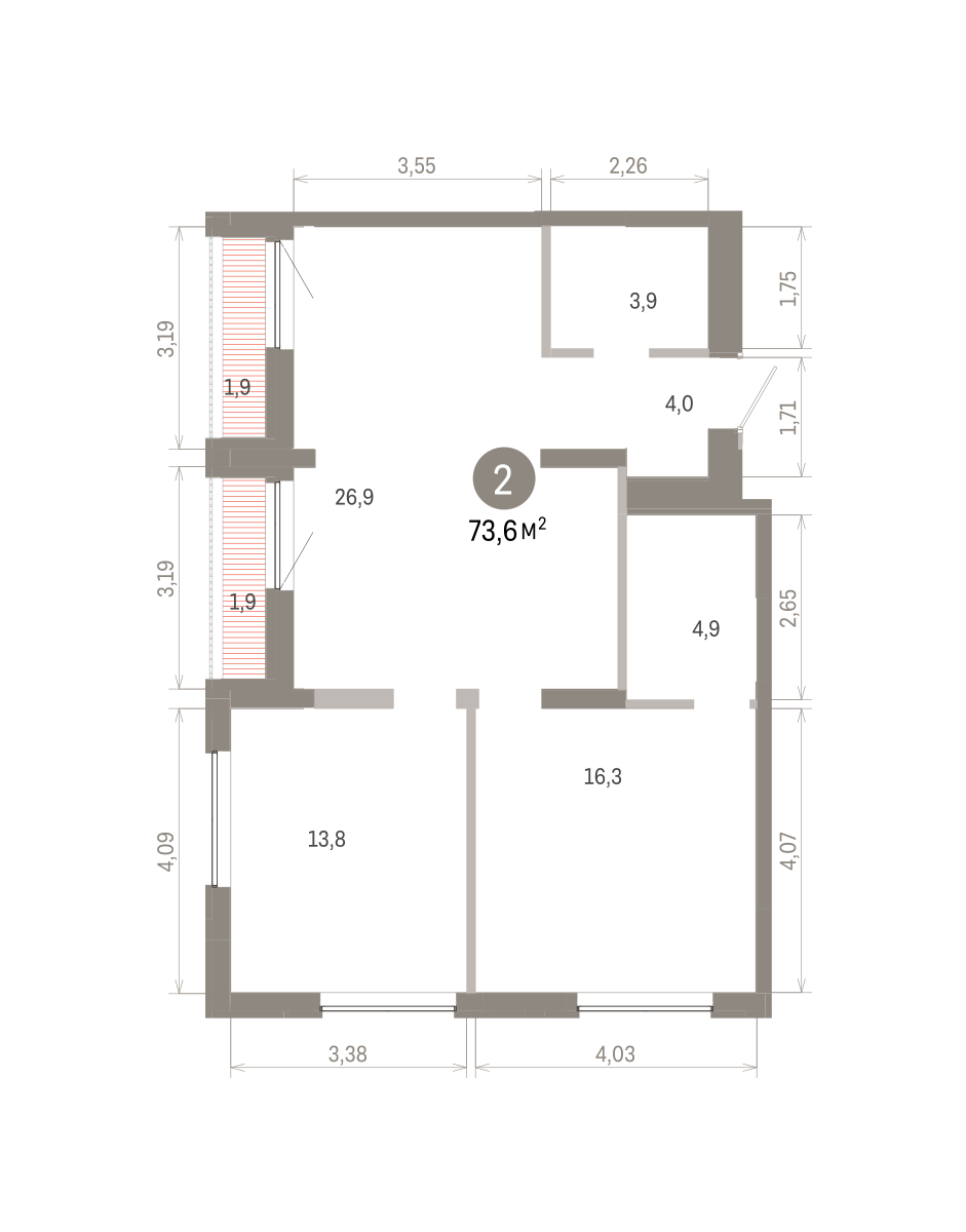 75.10 м² | 8 - 19 эт.