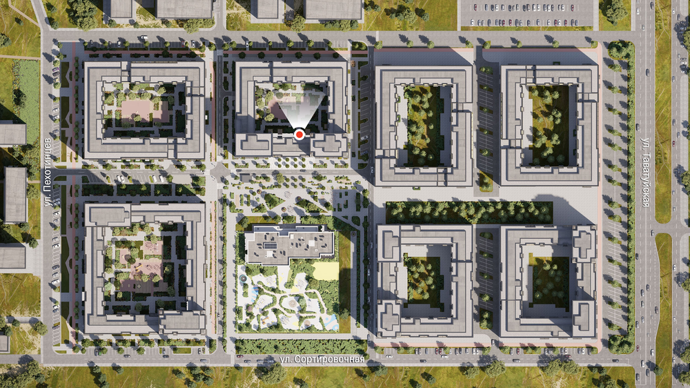 Квартал расположен в активно развивающейся части Старой Сортировки, на месте, где раньше был завод «Электротранс». В границах улиц Пехотинцев - Таватуйская - Сортировочная - Новая (проектируется). Рядом с «Депо» - автобусные остановки, в 20 мин ходьбы - трамвайные линии. С центром территорию связывают две основные магистральные улицы - Халтурина и Бебеля.