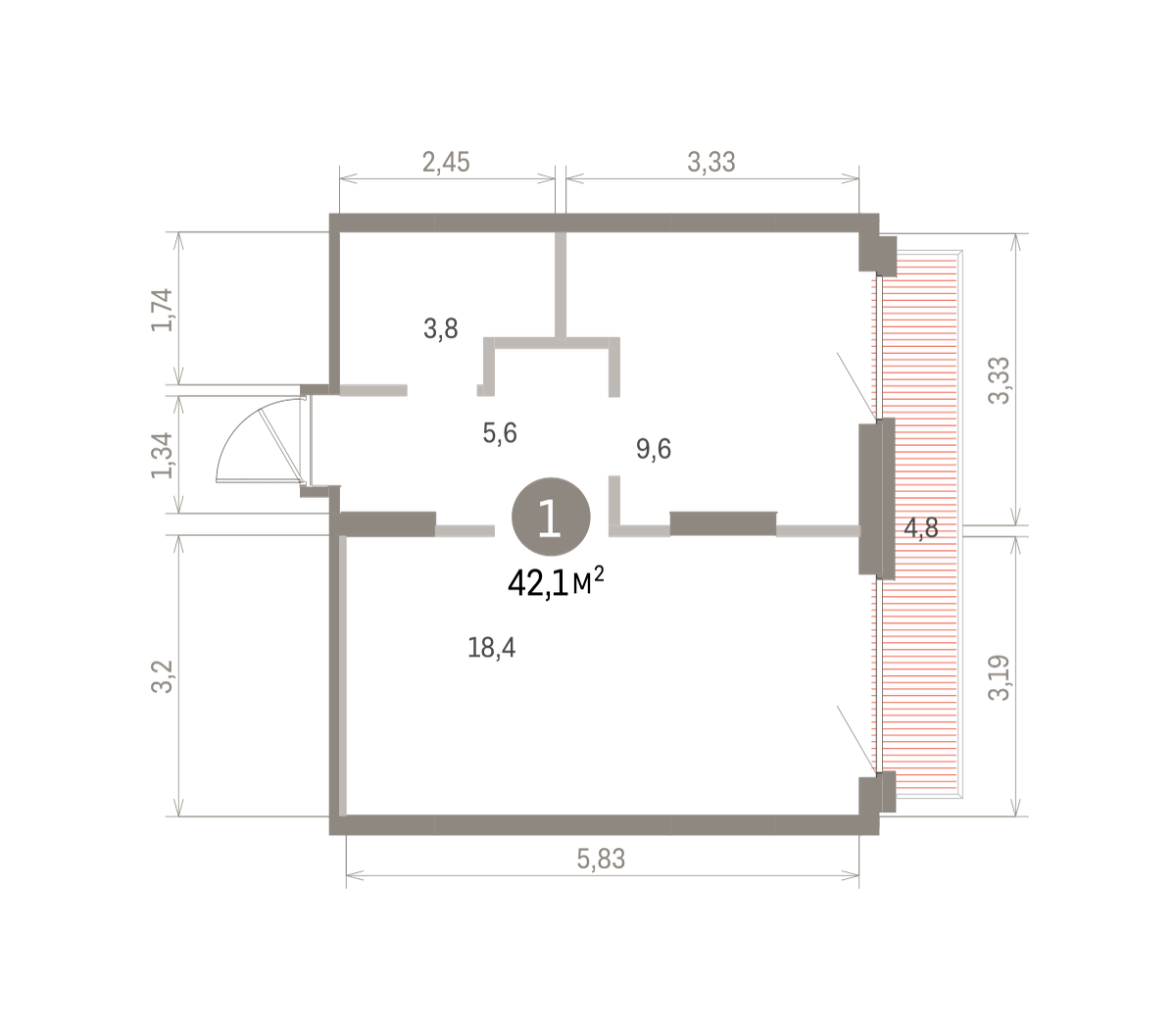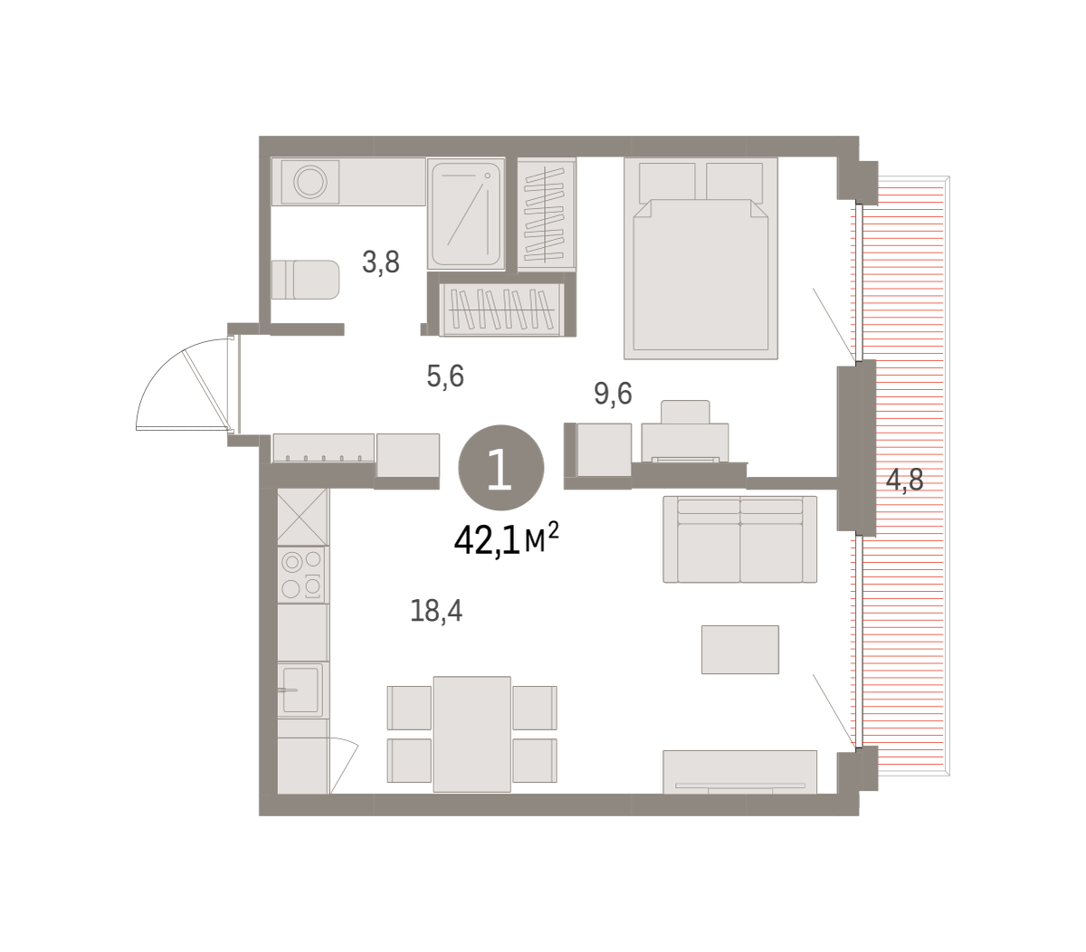 Продаётся с кладовой. Квартира с кухней-гостиной и одной спальней в Бруснике в Академическом. Особенности планировки: предчистовая отделка. № квартиры в нашей базе: АКД05-Ж4.4.5.